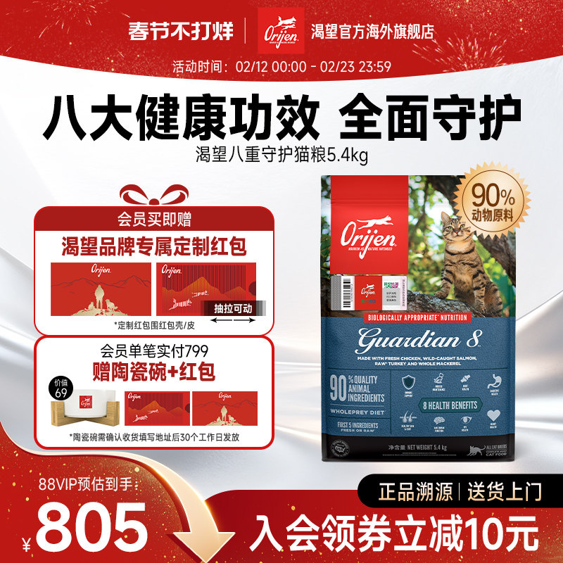 📚 【官方旗舰】Orijen渴望八重守护猫粮成猫进口营养全猫粮5.4kg