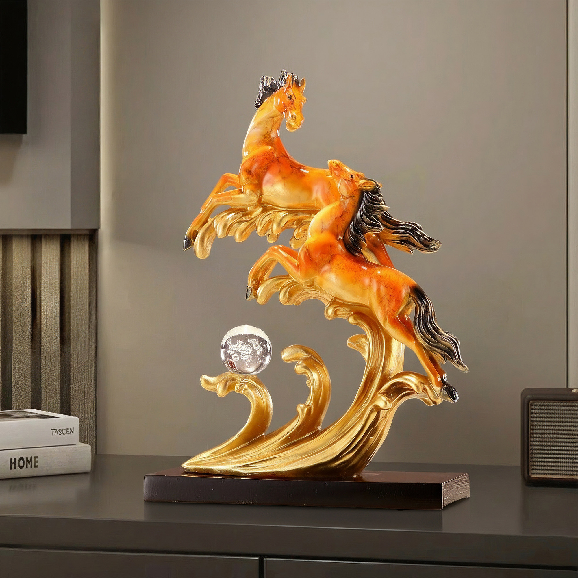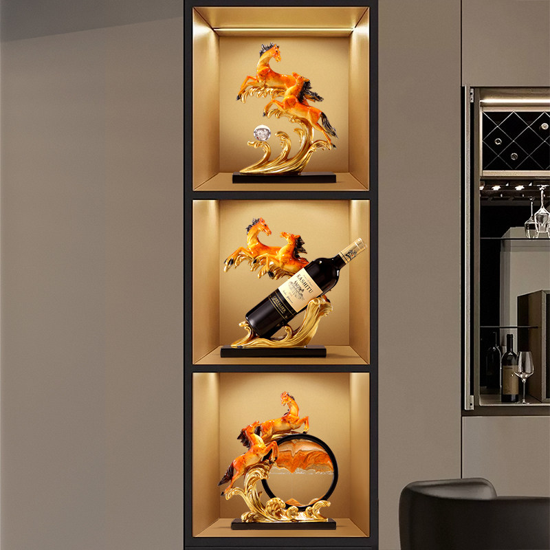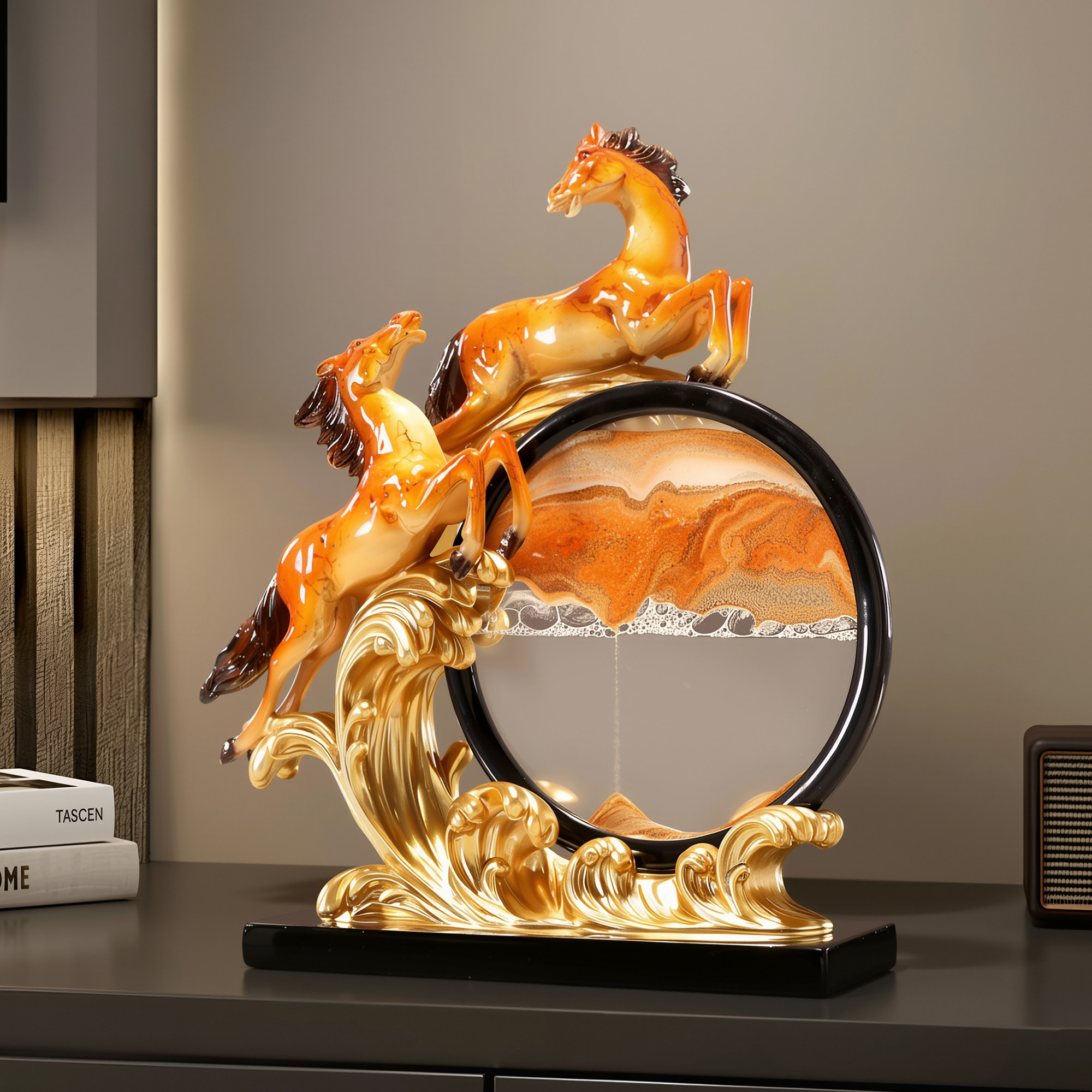 📚 新年新中式马年马到成功双马流沙画摆件客厅玄关电视柜酒柜装饰品
