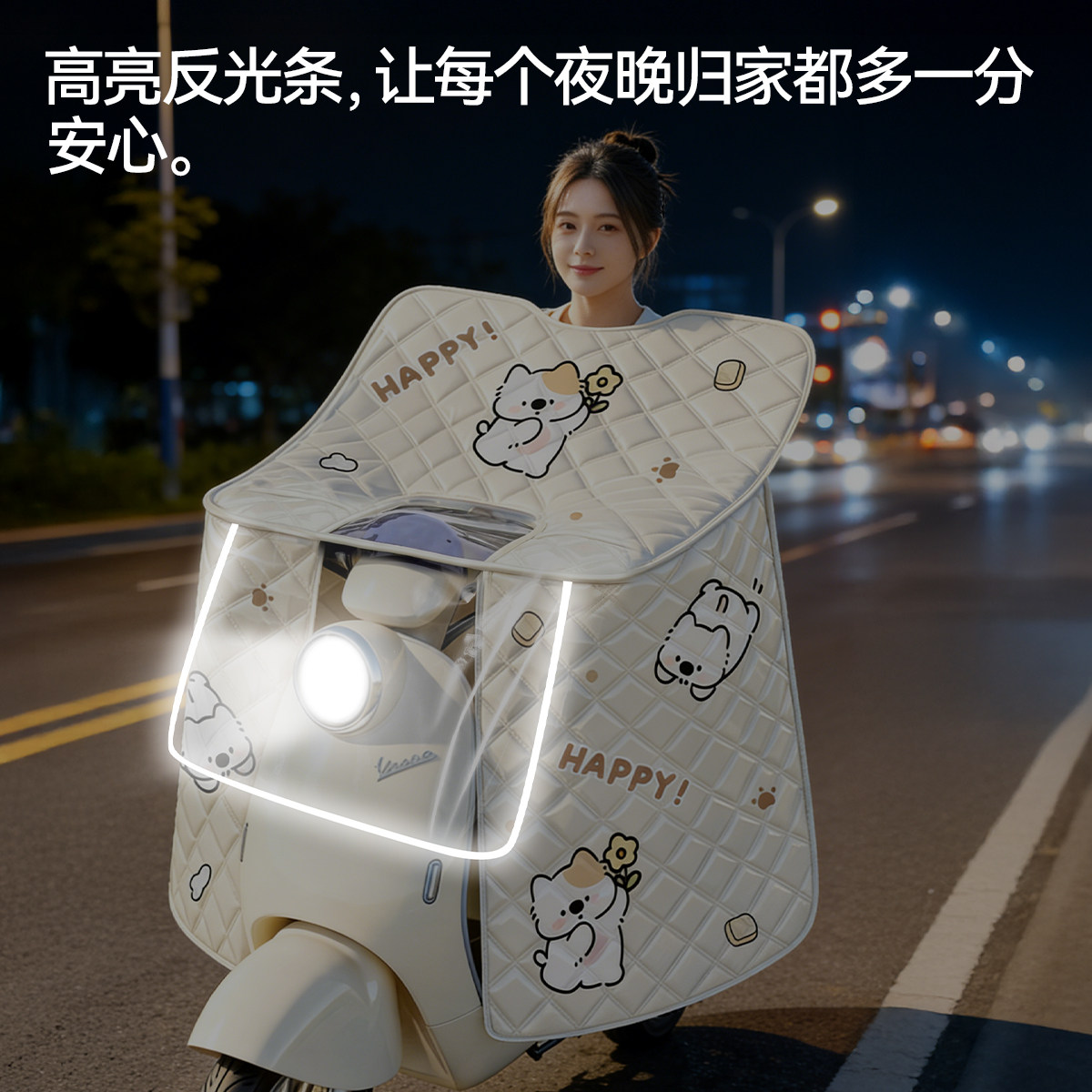 📚 电动车挡风被夏季防晒遮阳罩电瓶摩托车四季通用防水防风不磨车灯