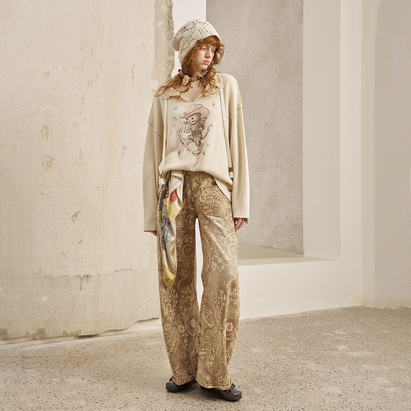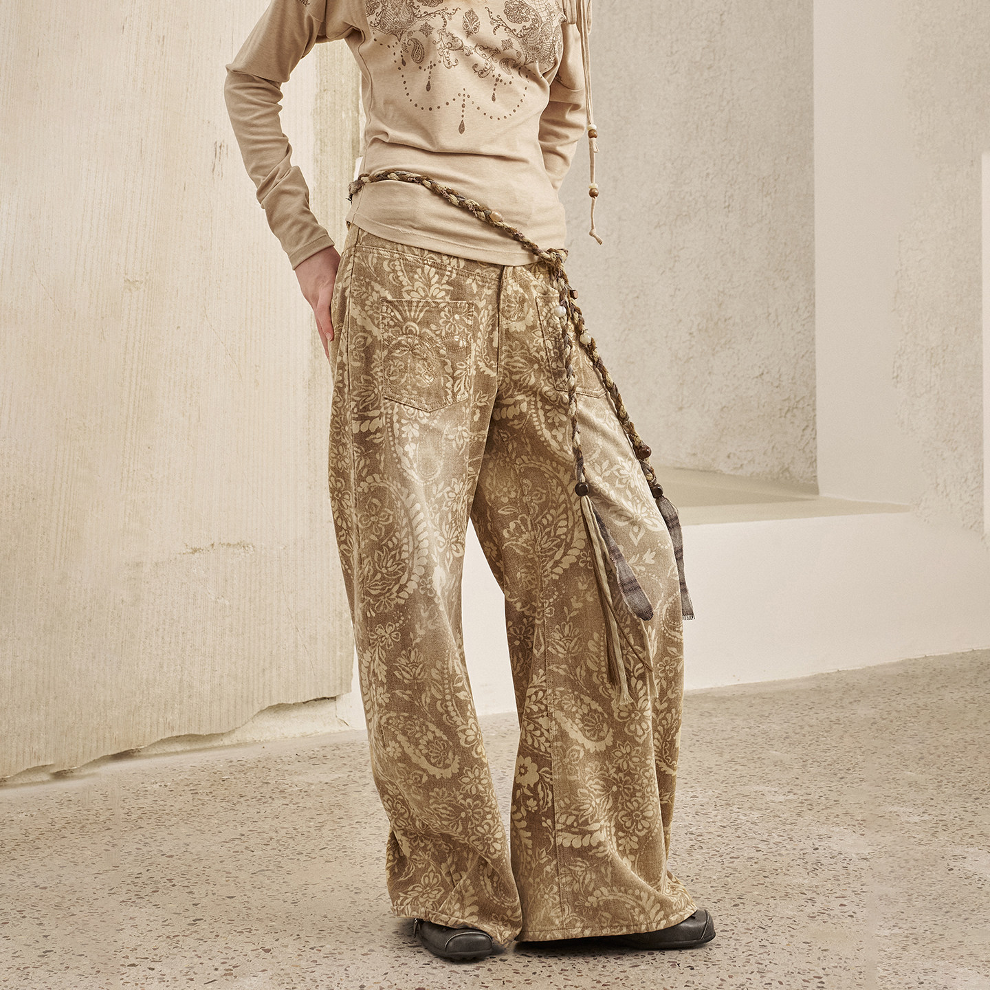 📚 【清仓特惠】DIDDIMODA 复古腰果花印花做旧直筒牛仔裤长裤阔腿裤