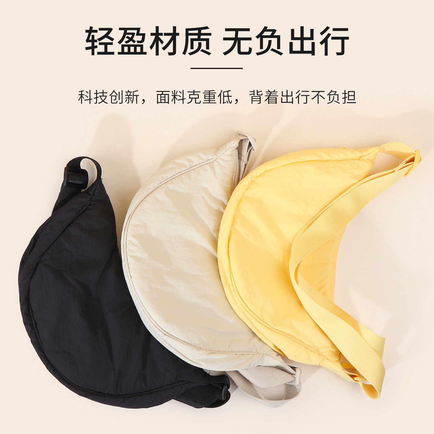 📚 miniso名创优品AIR系列西瓜包云朵轻便饺子包斜挎单肩运动尼龙包
