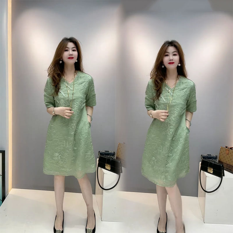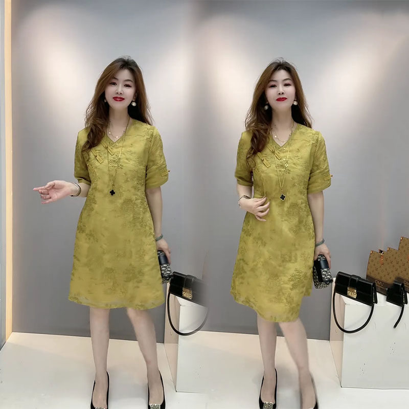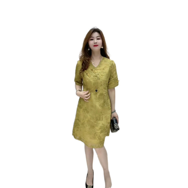 📚 新中式国风斜襟盘扣连衣裙女2026夏季新款高级重工提花气质短袖裙