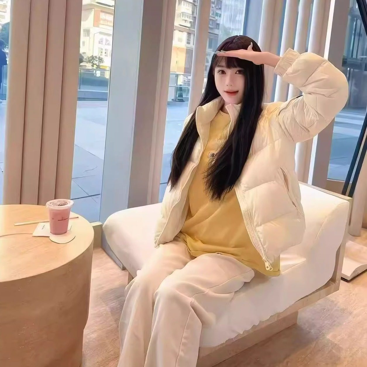 💫 外层选用优质白鸭绒材质,保暖性极佳。穿上身瞬间感受到了温暖的拥抱,仿佛整个冬天都暖洋洋的。立领的设计更是拉长了颈部线条,显瘦又显气质。
