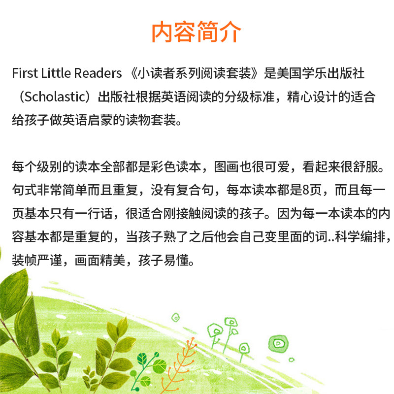 38¥ HU926 ONA2UjP8N8U¥ https://m.tb.cn/h.7H8Qu2k 【赠音频】英文原版学乐小读者系列英语分级阅读First Little Readers Level ABCDE绘本3-6岁儿童英语启蒙分级读物亲子图画故事书 --------------------- 【原售价】70元 【现售价】42元。