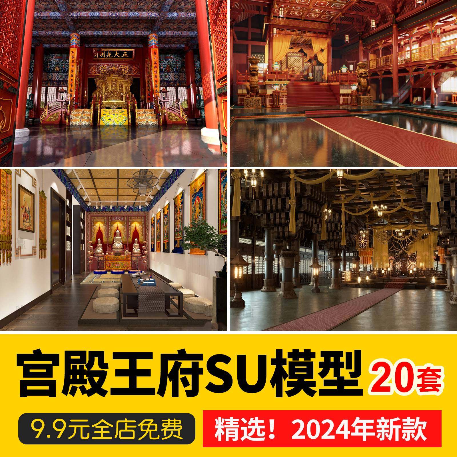 📚 宫殿大殿王府SU模型库中式古建筑古代会客厅卧房影视布景草图大师