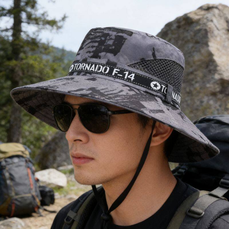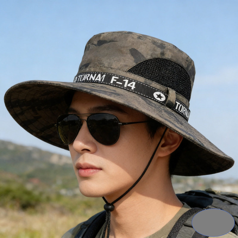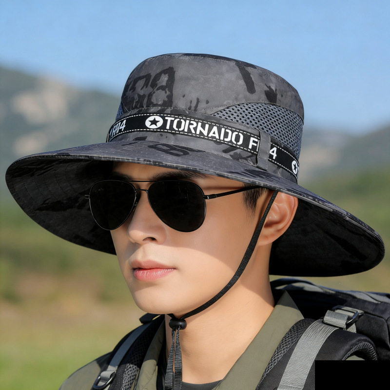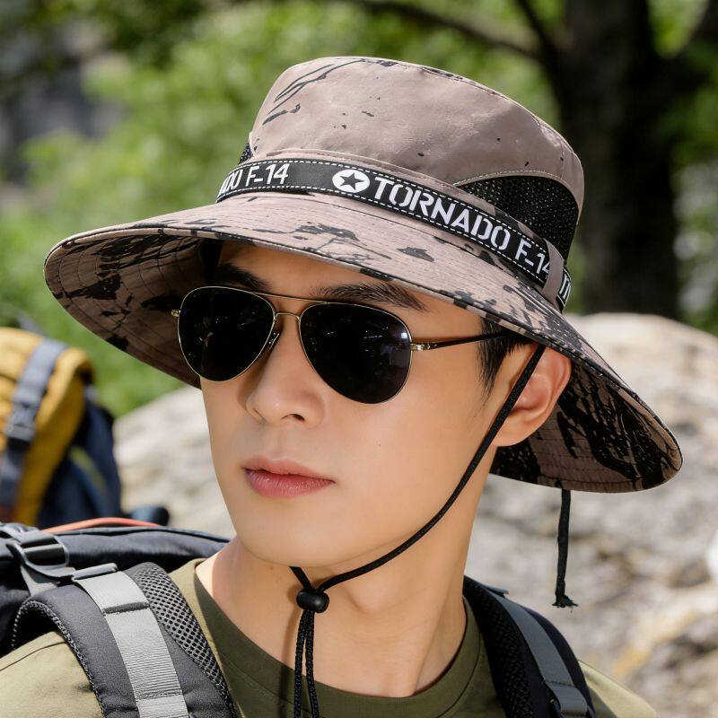 📚 夏季防晒遮阳帽子男士户外旅游钓鱼登山大檐渔夫帽透气迷彩太阳帽