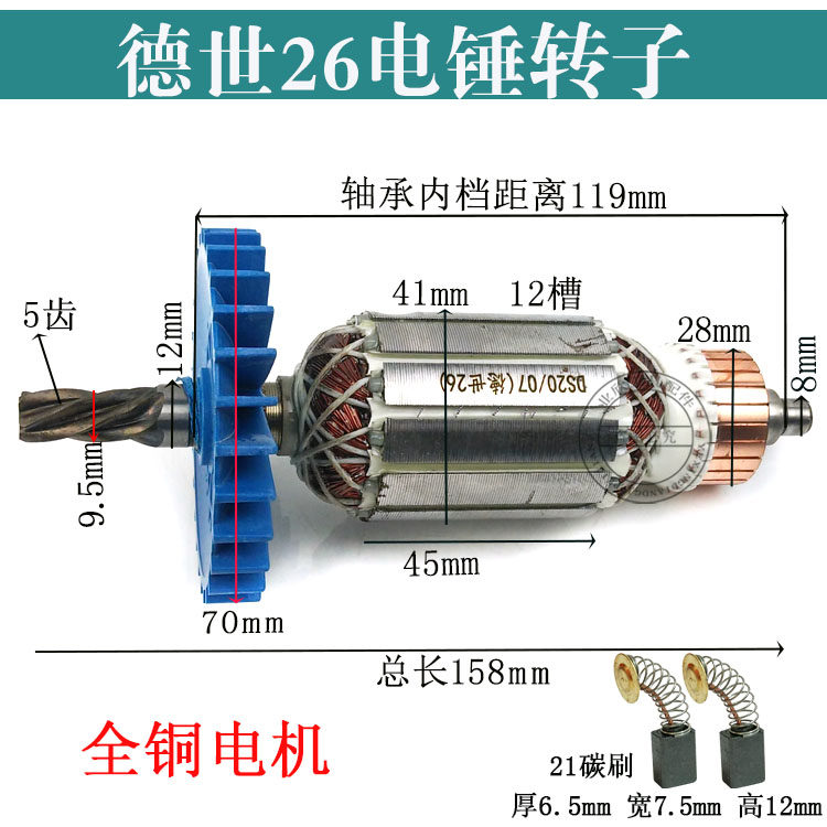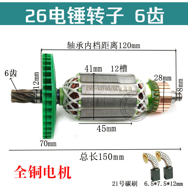 📚 配26电锤转子沪工恒丰东城华丽恒友德世电捶冲击钻5五六齿转定子