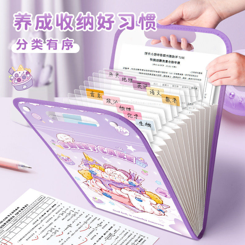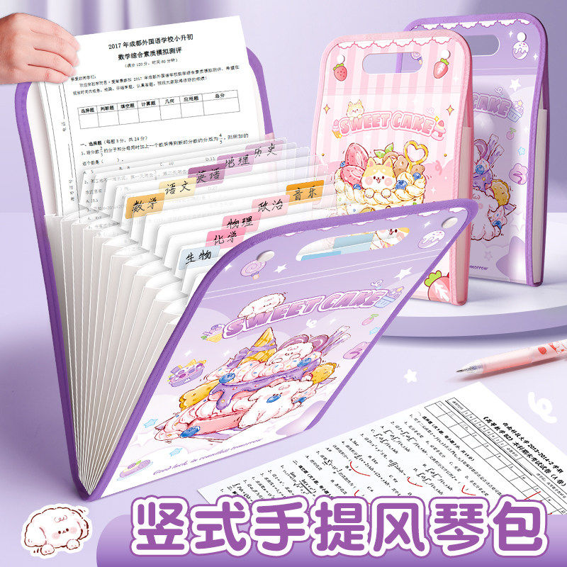 📚 13层手提式风琴包初中生专用大容量多层文件袋小号高颜值试卷夹帆布竖式可立式票据报销单据小学生分类收纳袋