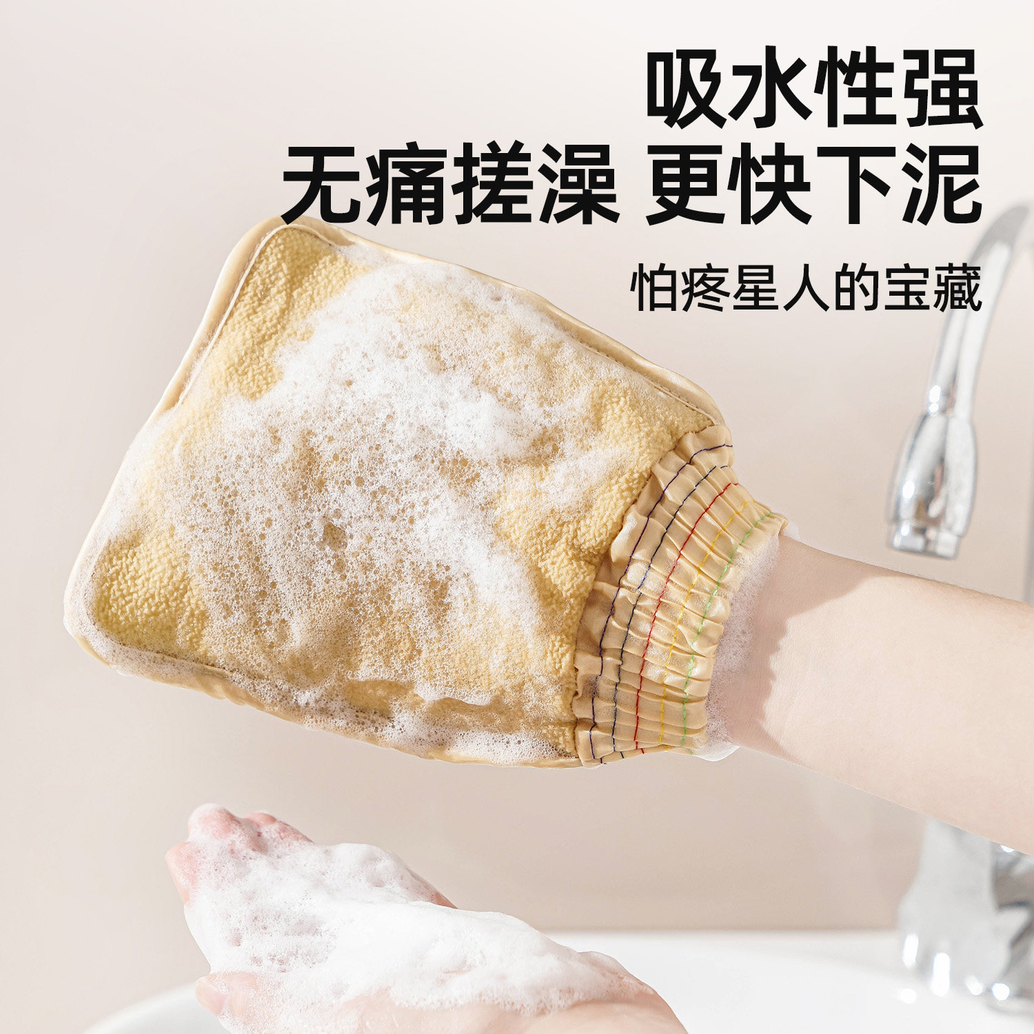 📚 清清美搓澡巾新款洗澡神器女士不疼强力后背搓灰家用双面搓泥手套