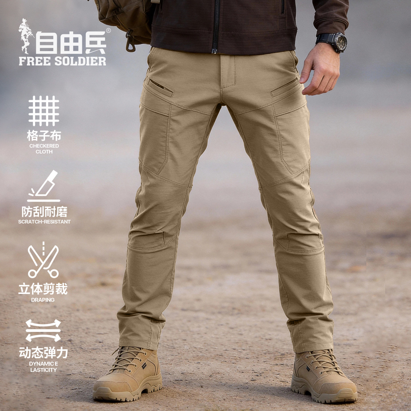 📚 自由兵户外峰越战术裤男多口袋工装裤美式弹力格子布耐磨春季长裤