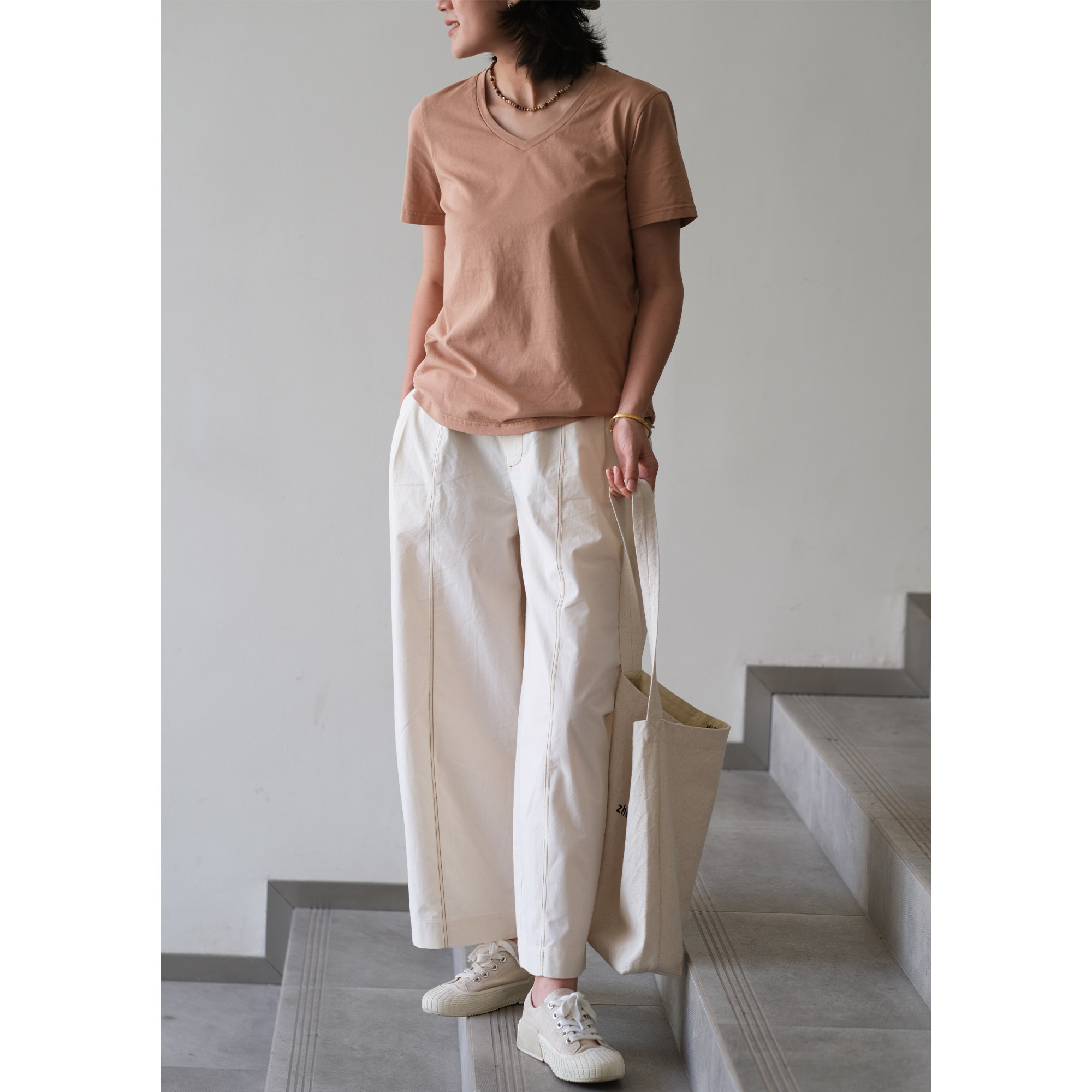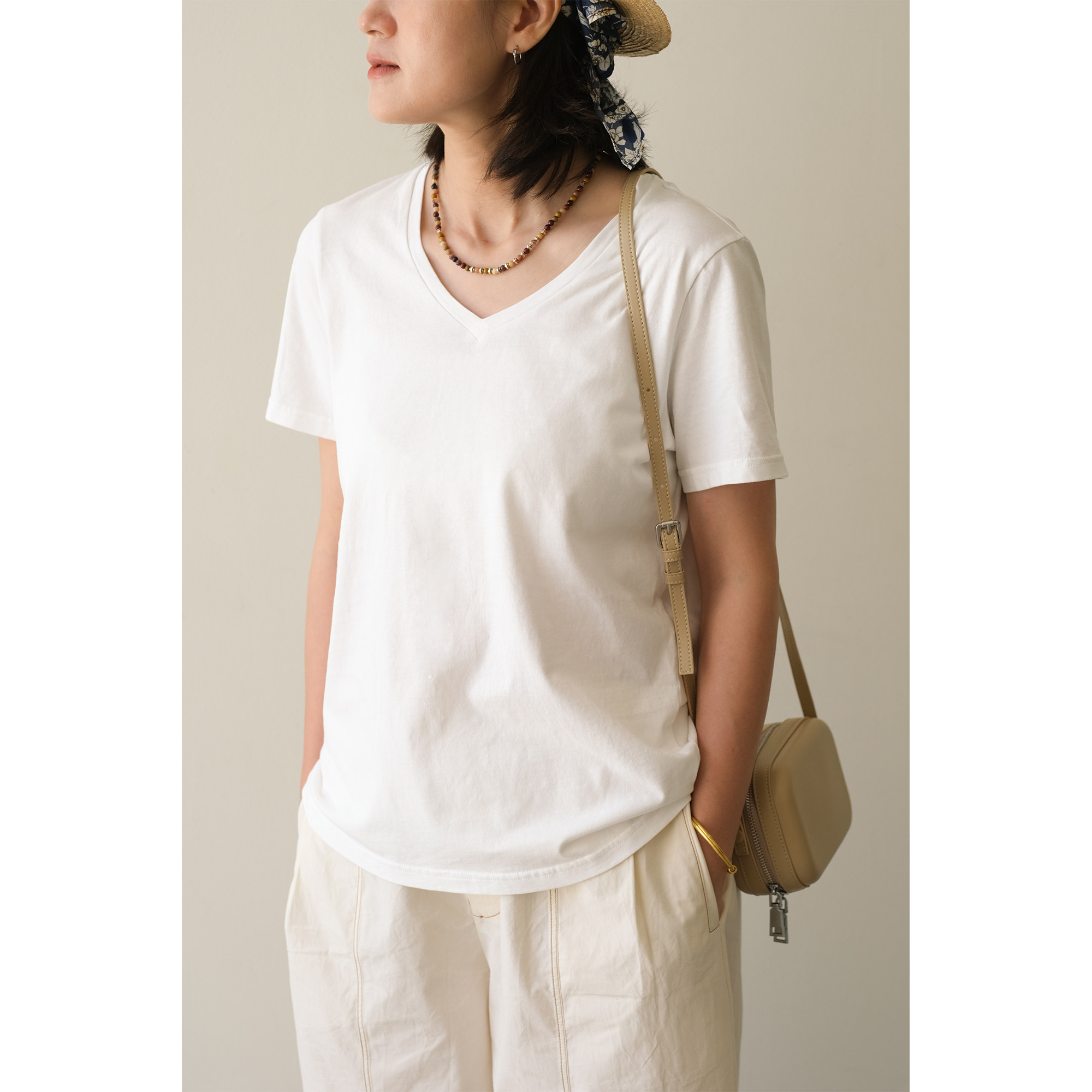 📚 远家纯棉V领短袖T恤多色莫兰迪色系基础款上衣百搭夏新LL1587限量