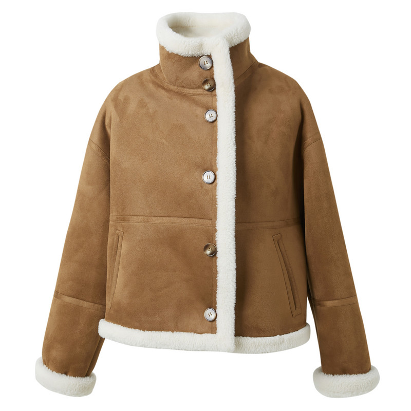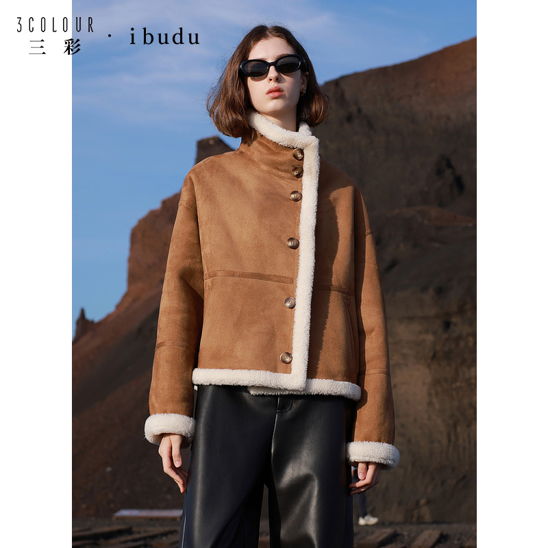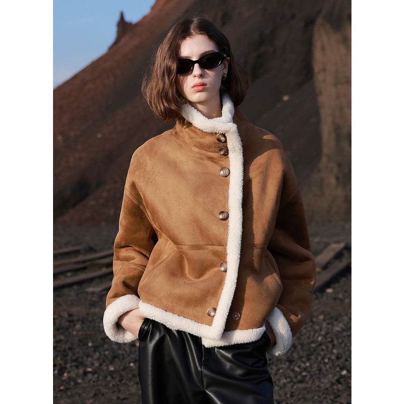 📚 ibudu2025冬季新款仿麂皮颗粒绒环保皮草机车外套宽松潮酷