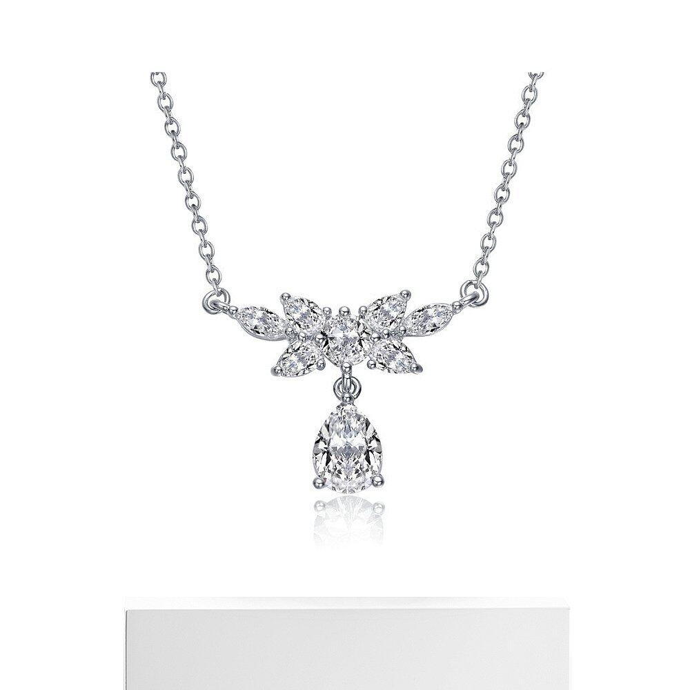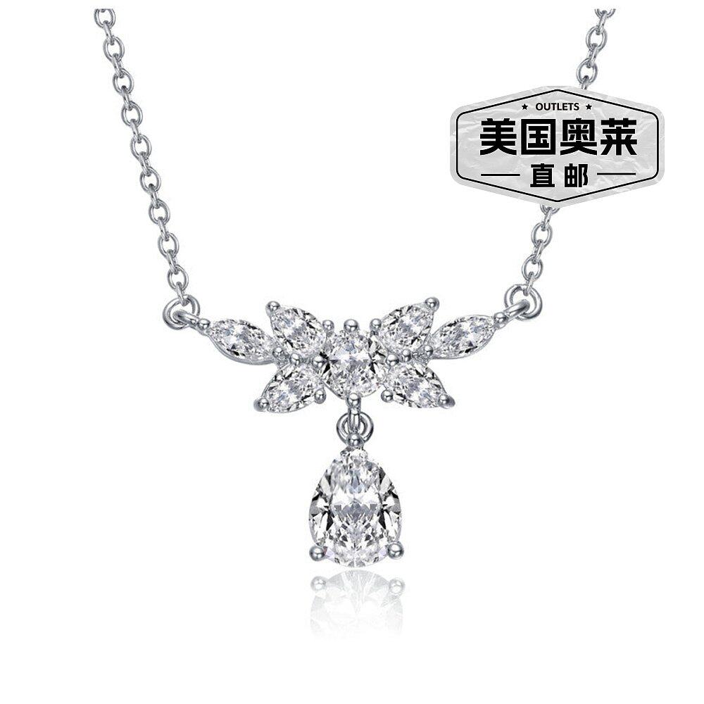 📚 自营 genevive纯银镀白金透明方晶锆石泪珠项链 - 白色 美国奥莱