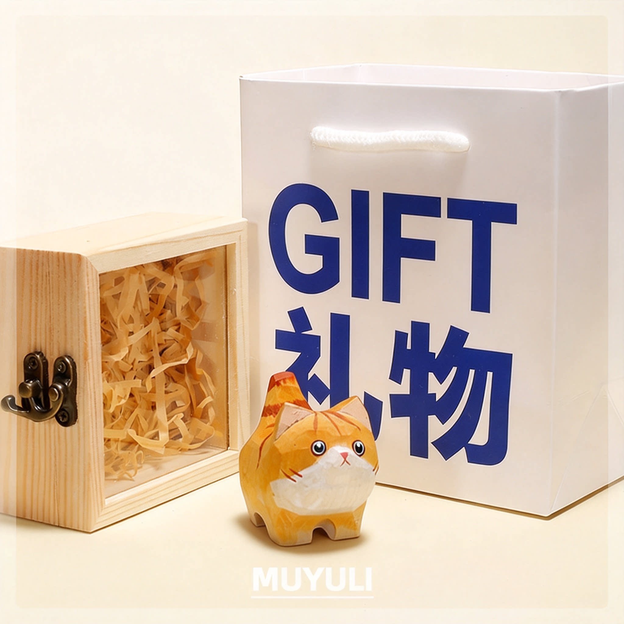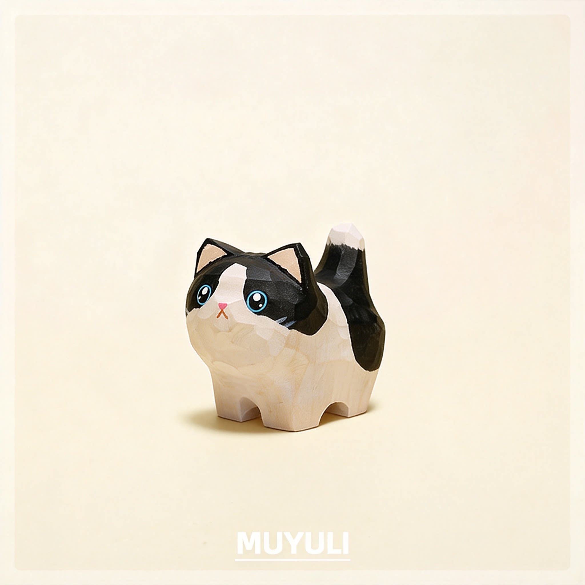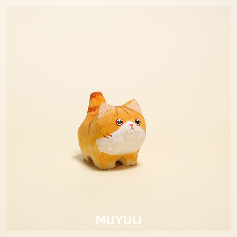 📚 手工木雕小猫咪桌面摆件木质雕刻工艺品呆萌可爱创意礼品玩具玩偶