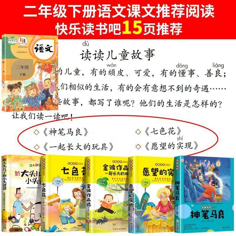 📚 【彩图注音】全5册二年级下册必读的课外书语文人教版正版快乐读书吧书目神笔马良七色花愿望的实现大头儿子寒假老师推荐经典阅读