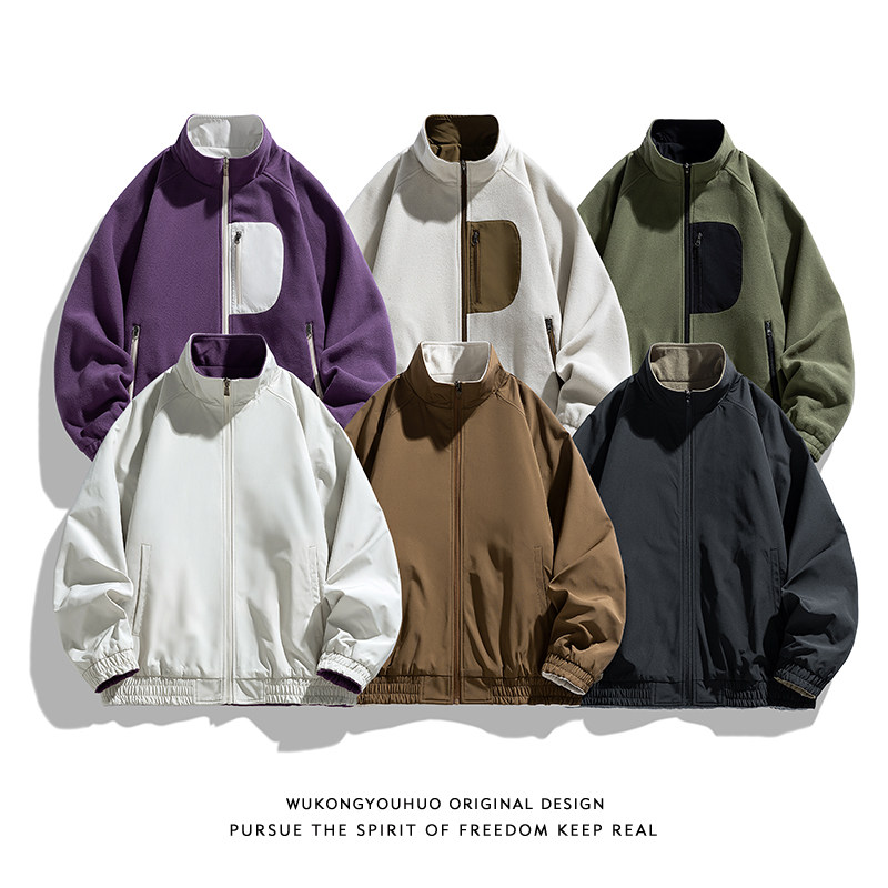 📚 悟空有货秋季日系工装双面穿立领夹克男潮牌宽松休闲百搭拉链外套