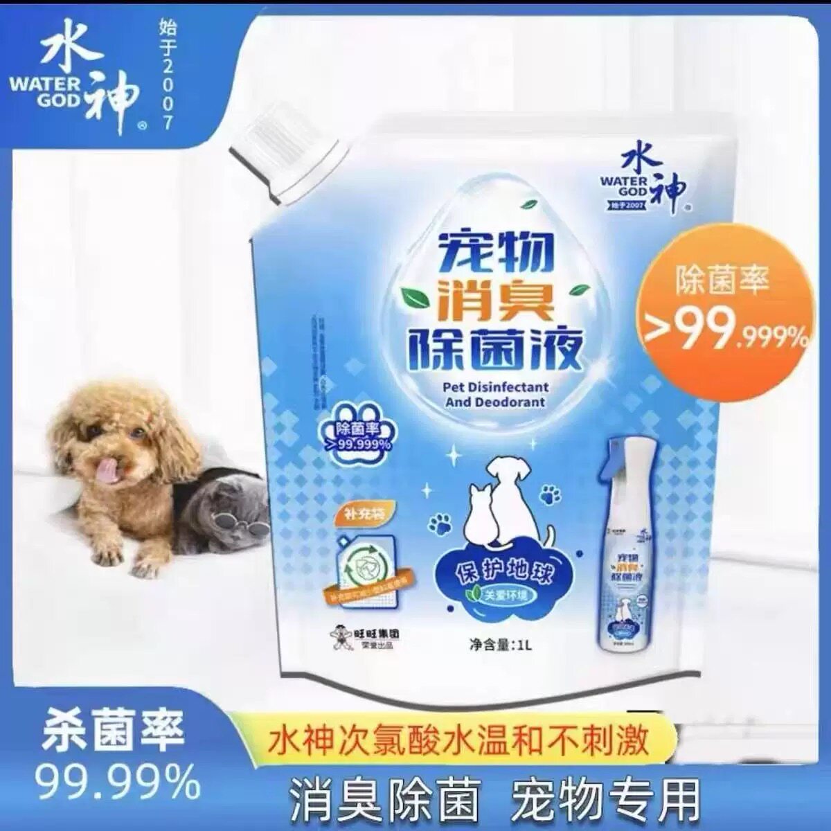 📚 旺旺水神宠物除菌喷雾电解次氯酸水猫狗通用环境除菌喷雾消臭剂