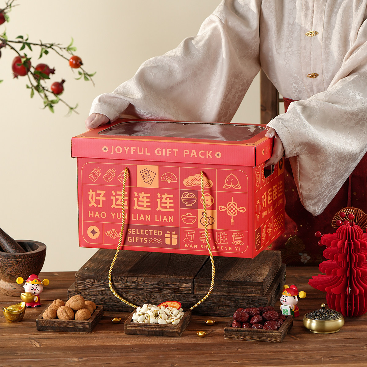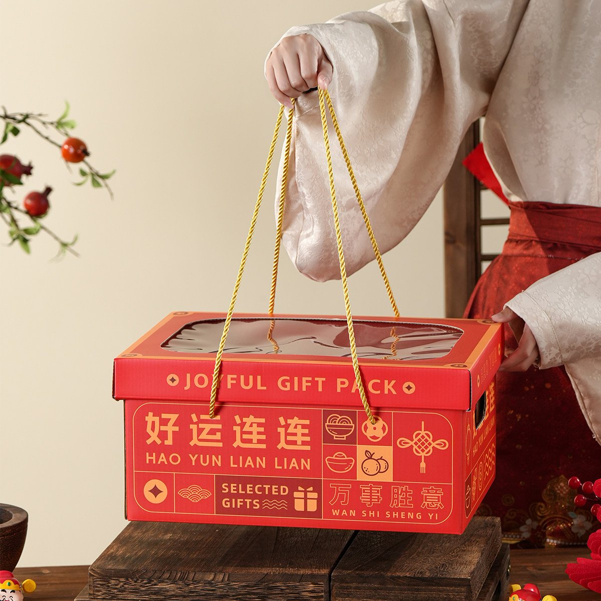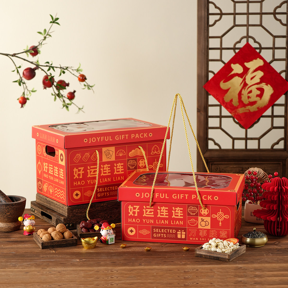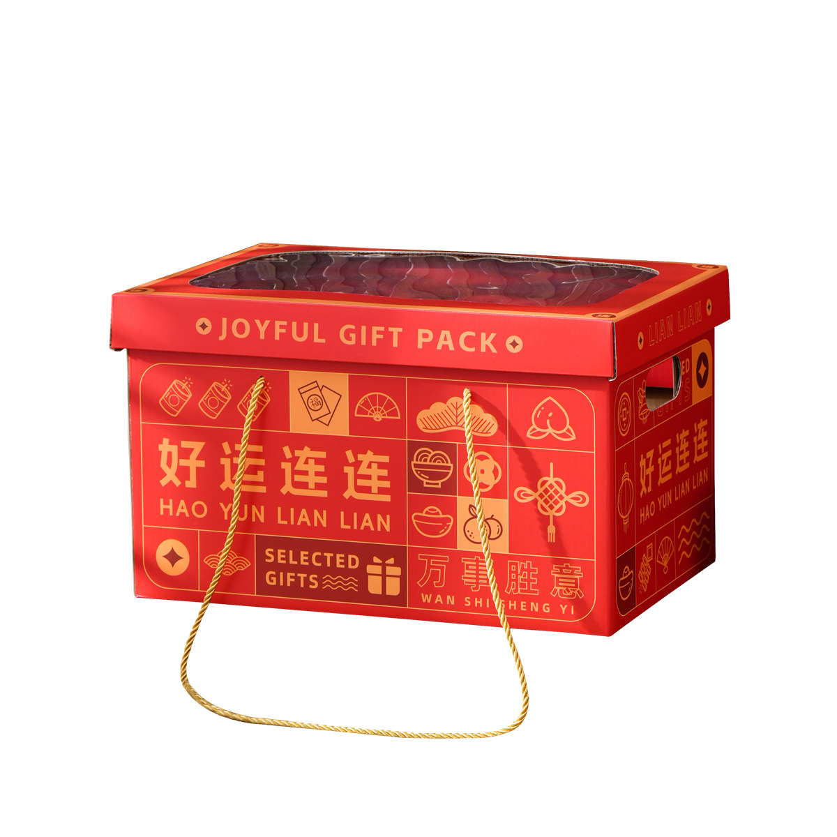 📚 新年好运透明开窗大容量高档礼品盒送礼礼品高点特产水果包装盒