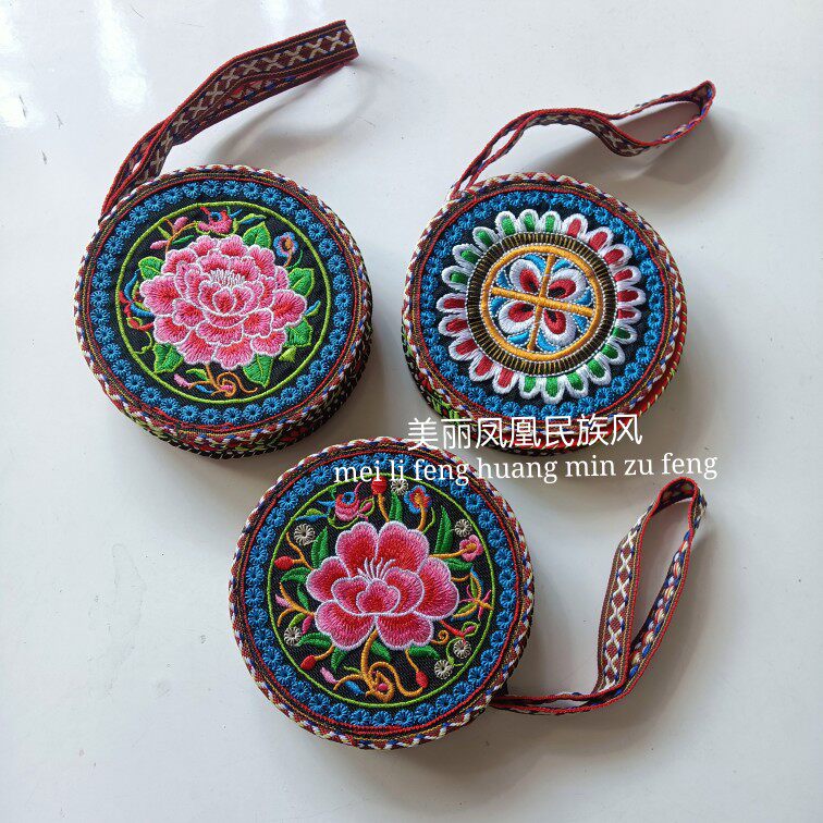 📚 新款凤凰古城民族特色手挽包手拎包纯手工双面刺绣硬币包小零钱包