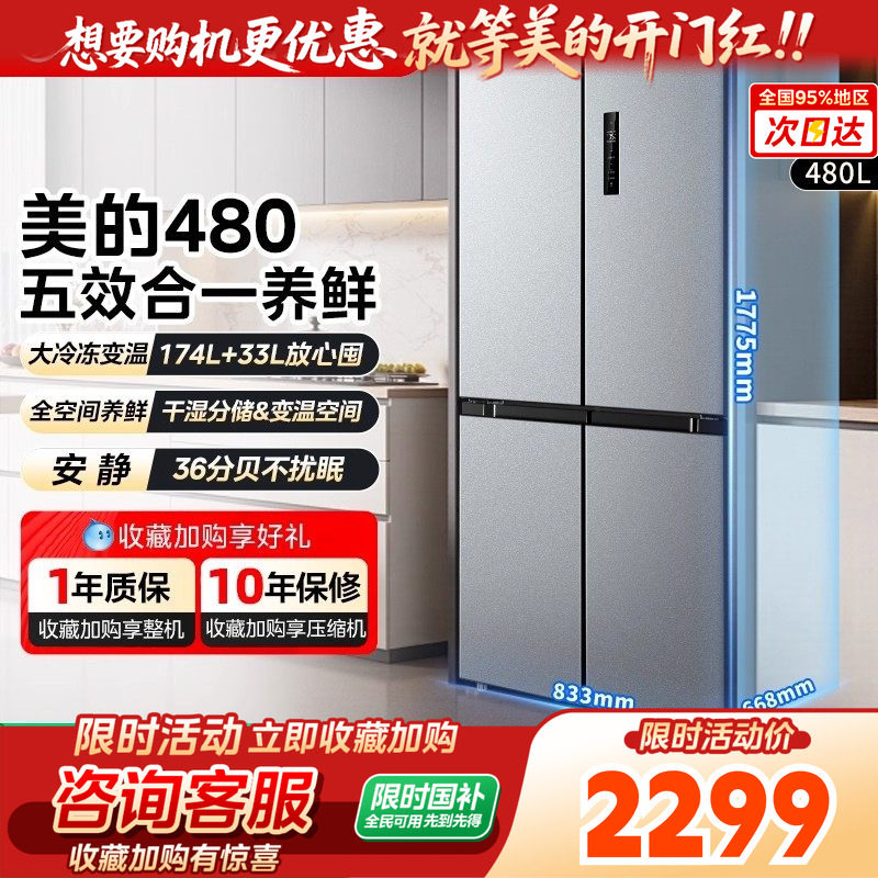 📚 【以旧换新】美的480十字双开门大容量一级无霜嵌入家用冰箱超薄