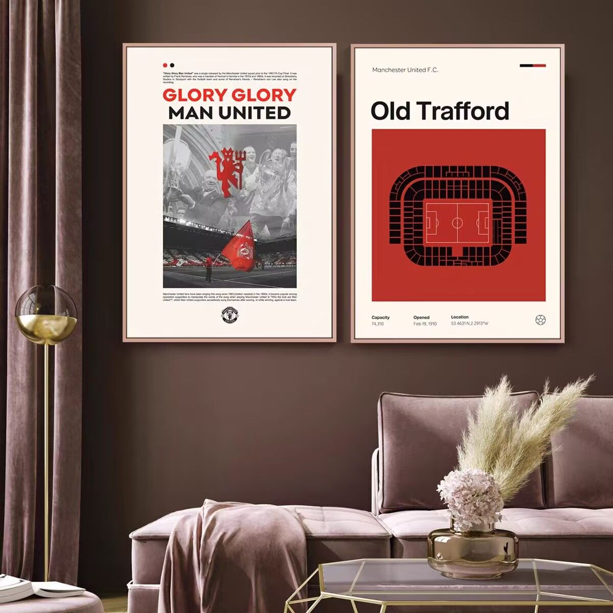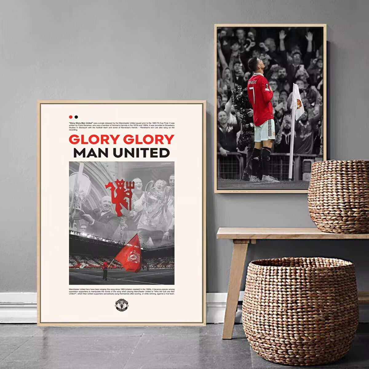 📚 曼联足球俱乐部队歌球衣装饰画老特拉福德球场欧冠军C罗海报挂画