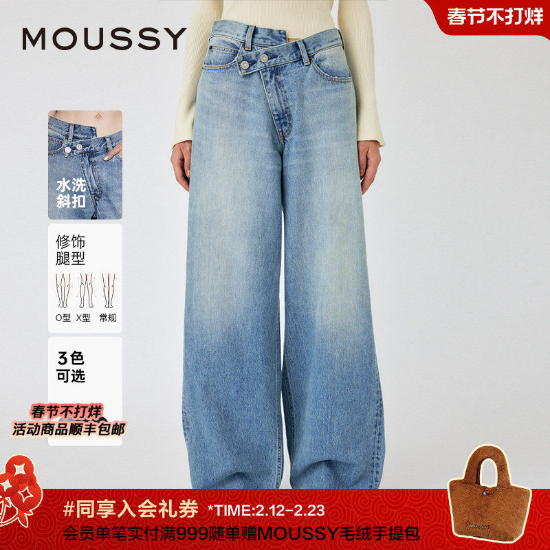 📚 程潇同款MOUSSY 不规则设计感斜扣遮肚阔腿牛仔裤女010IAA11-6771