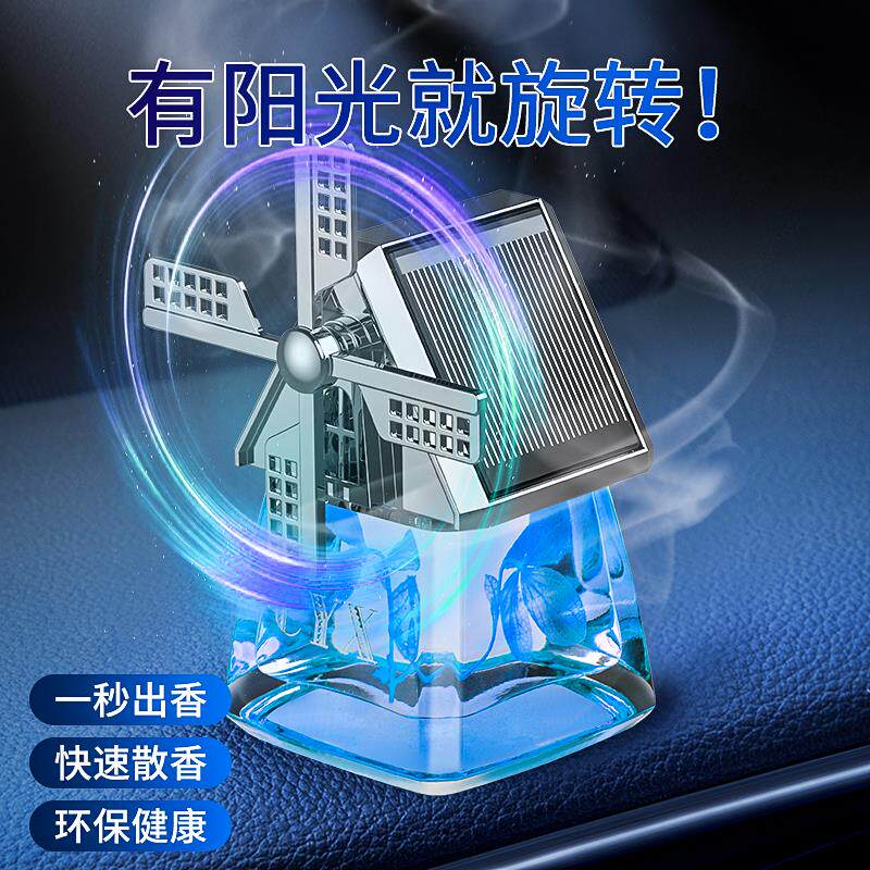 📚 汽车摆件香水太阳能车载中控台屋子风车香薰座车用除异味香氛装饰