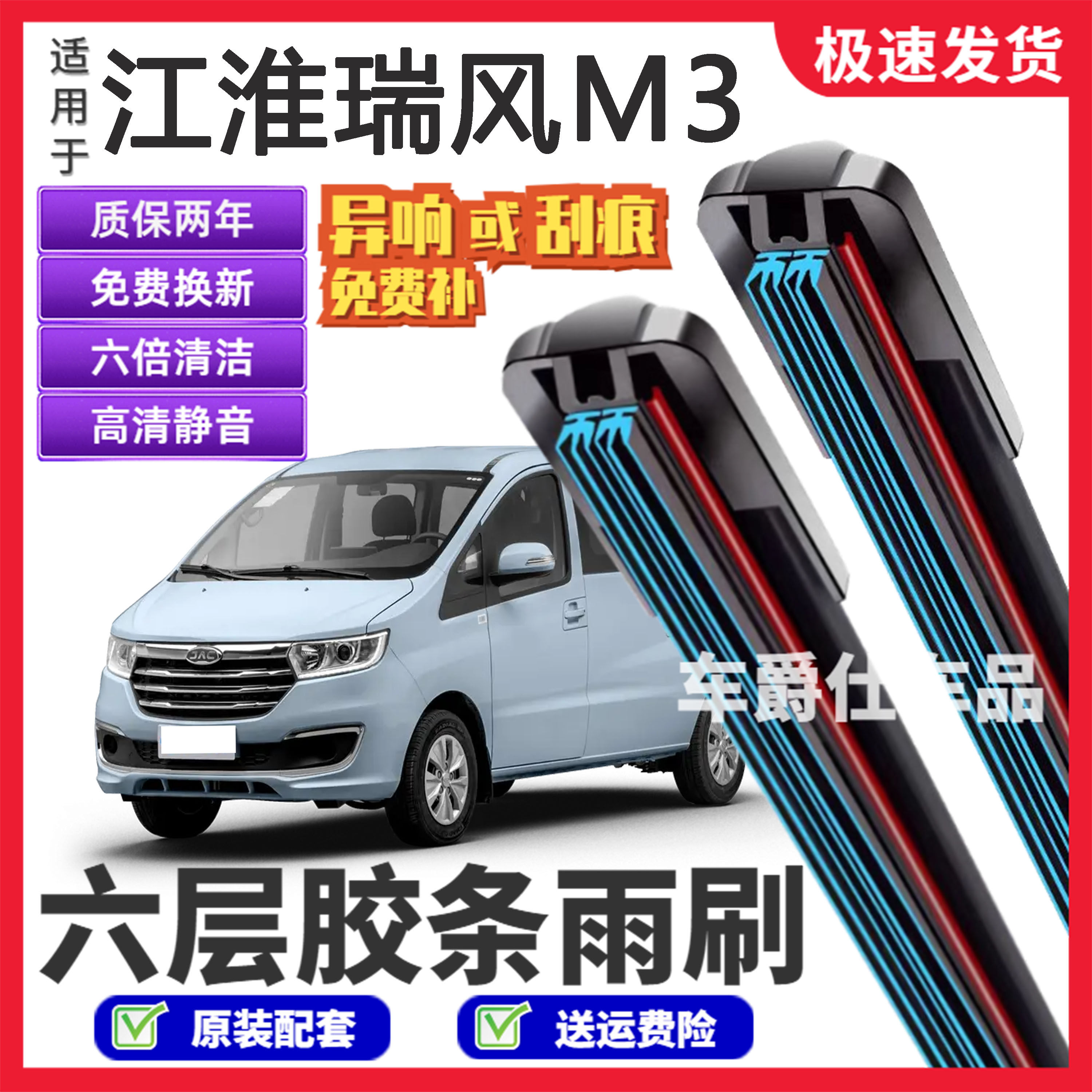 📚 适用江淮瑞风M3六层胶条雨刮器原装前后静音专用无骨6胶条雨刷片