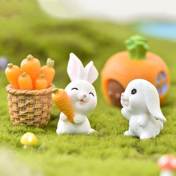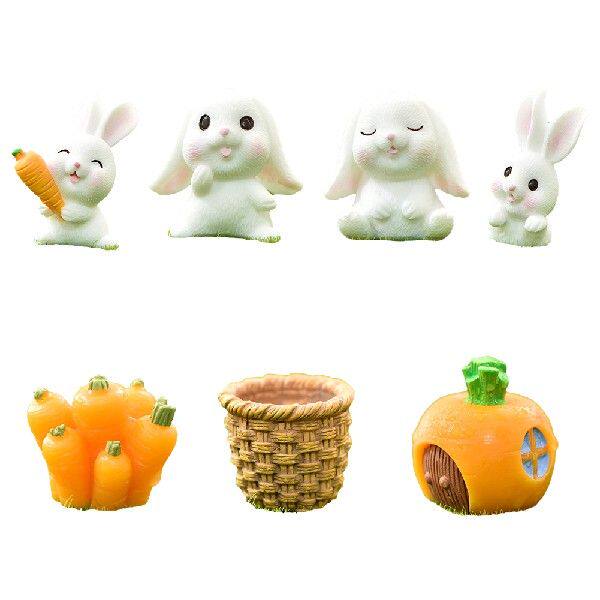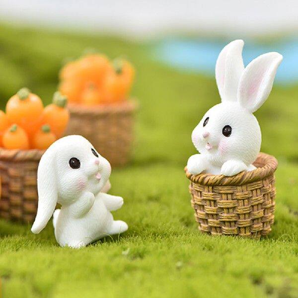 📚 Mini Rabbits Model Statue Resin Bunny Figurine Fairy Home