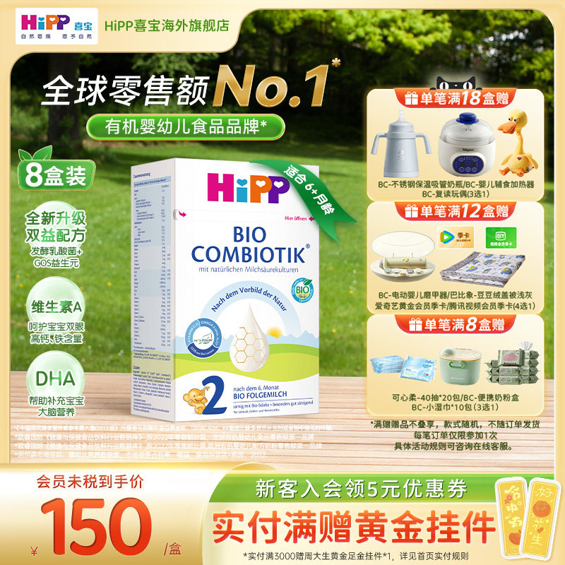 📚 HiPP喜宝 德国珍宝版有机益生菌婴幼儿配方奶粉2段*8(6-10个月)