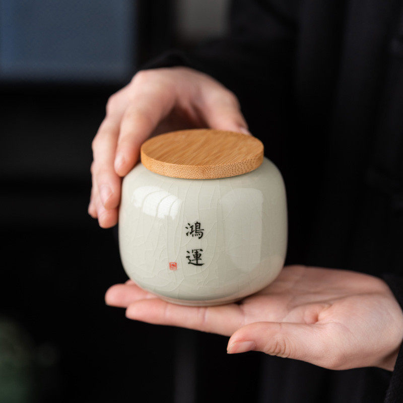 📚 中式书法精品高档哥窑迷你茶叶罐陶瓷随身便携小号旅游茶叶密封罐