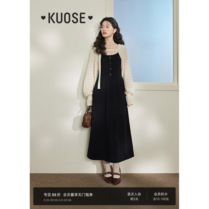 19¥ HU287 49lNUtmW6b7¥ https://m.tb.cn/h.i1zPey0 阔色黑色吊带连衣裙两件套装针织开衫女2025早秋季新款长裙子冬 --------------------- 【原售价】294元 【现售价】188元。