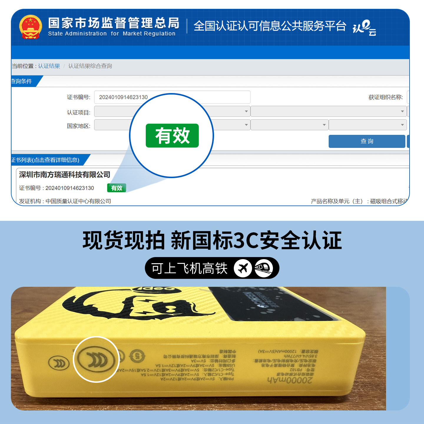 📚 【新国标3C认证】ideo充电宝65W磁吸分离式自带线插头20000毫安大容量氮化镓快充移动电源适用于苹果华为安卓
