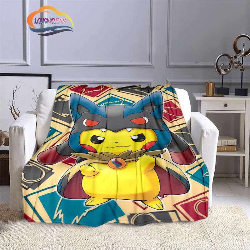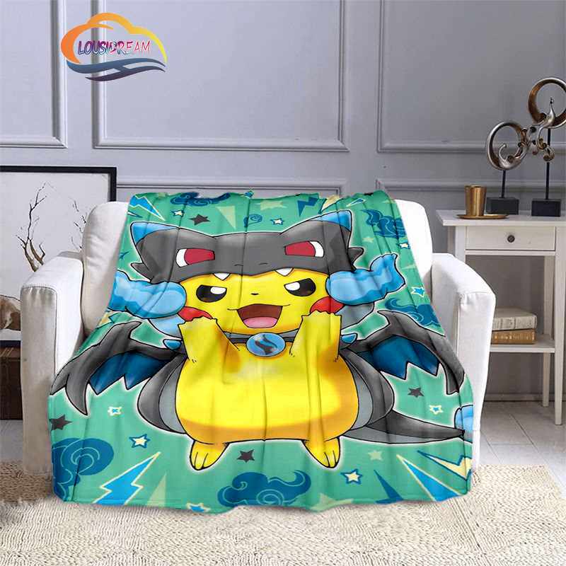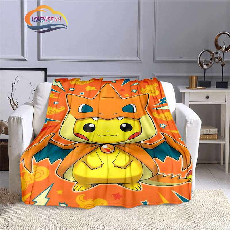 📚 Cartoon 3D Printing ポケモンFlannel Throw Blanket Faion Po
