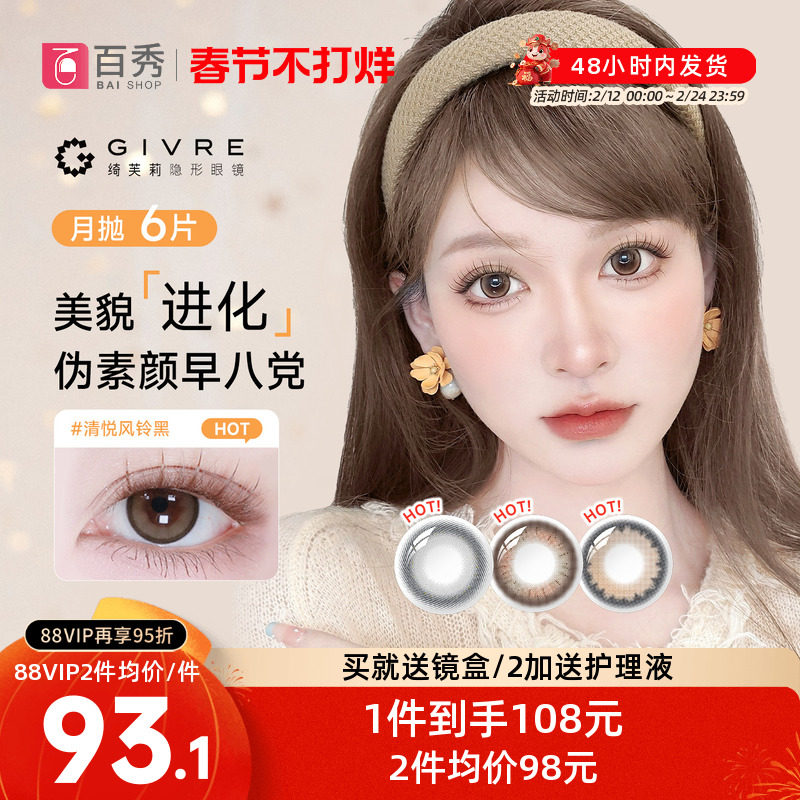 📚 绮芙莉Givre美瞳月抛盒6片装大小直径1片装*6彩色隐形眼镜