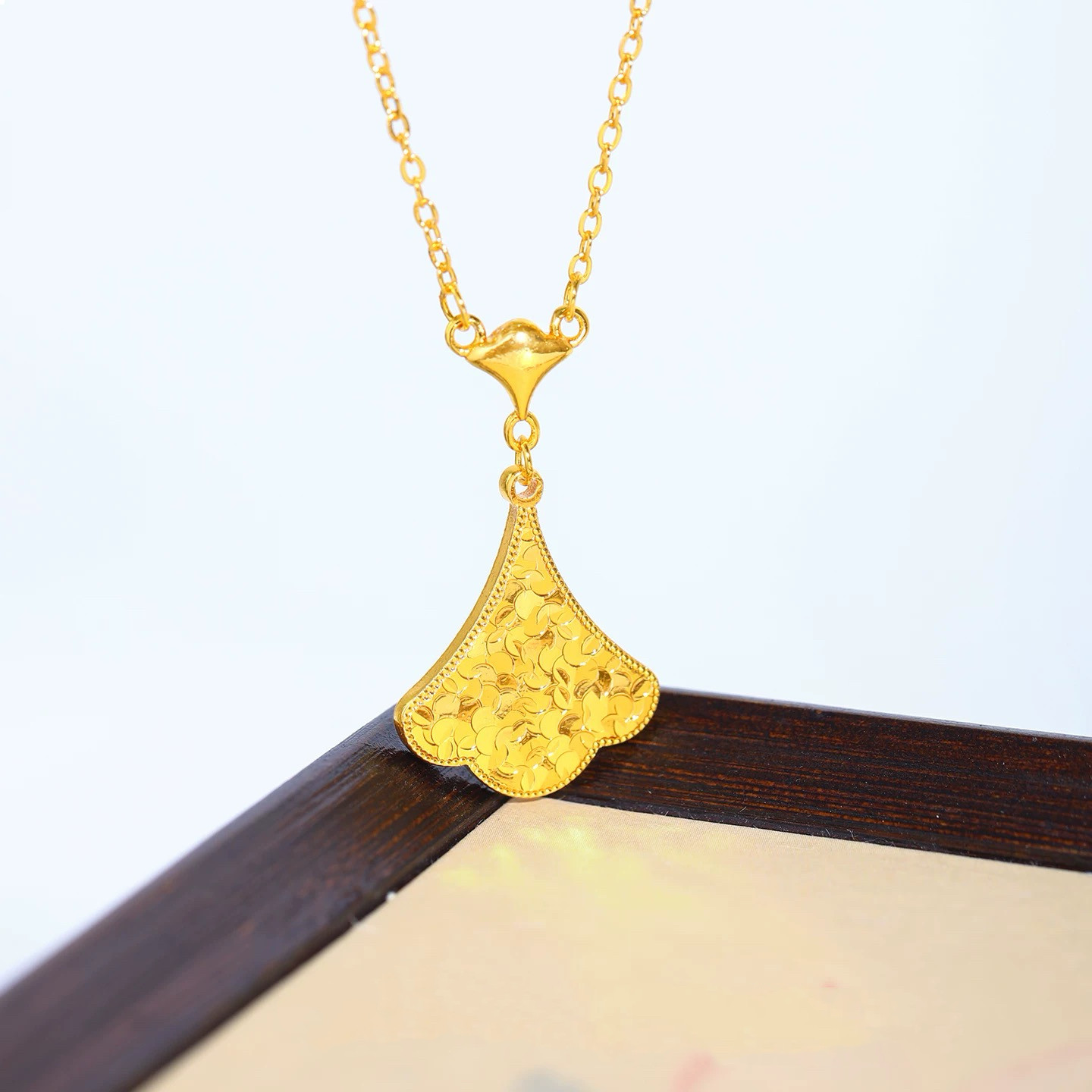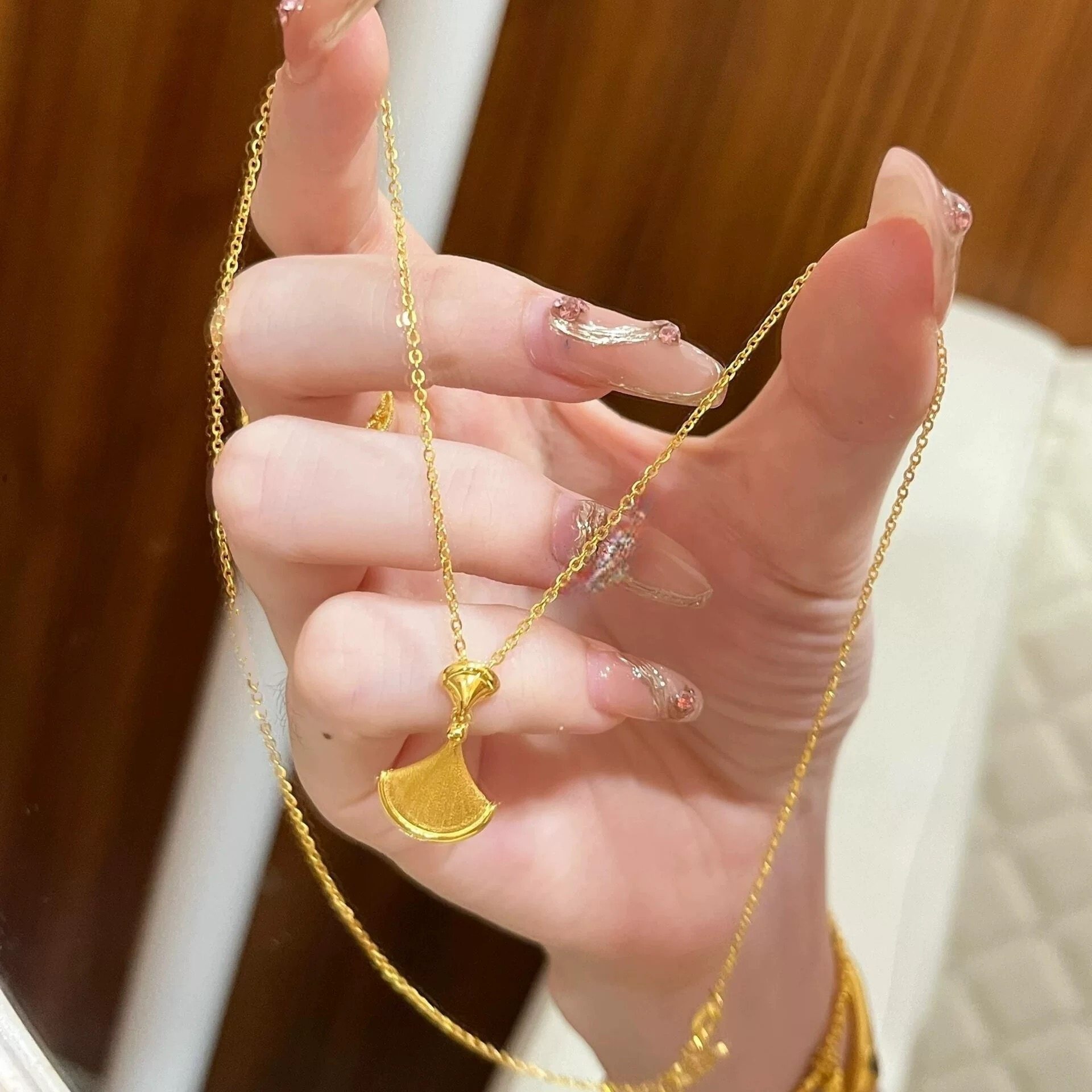 📚 拉丝银杏叶小裙子沙金项链仿真黄金套链轻奢高级感扇子锁骨链