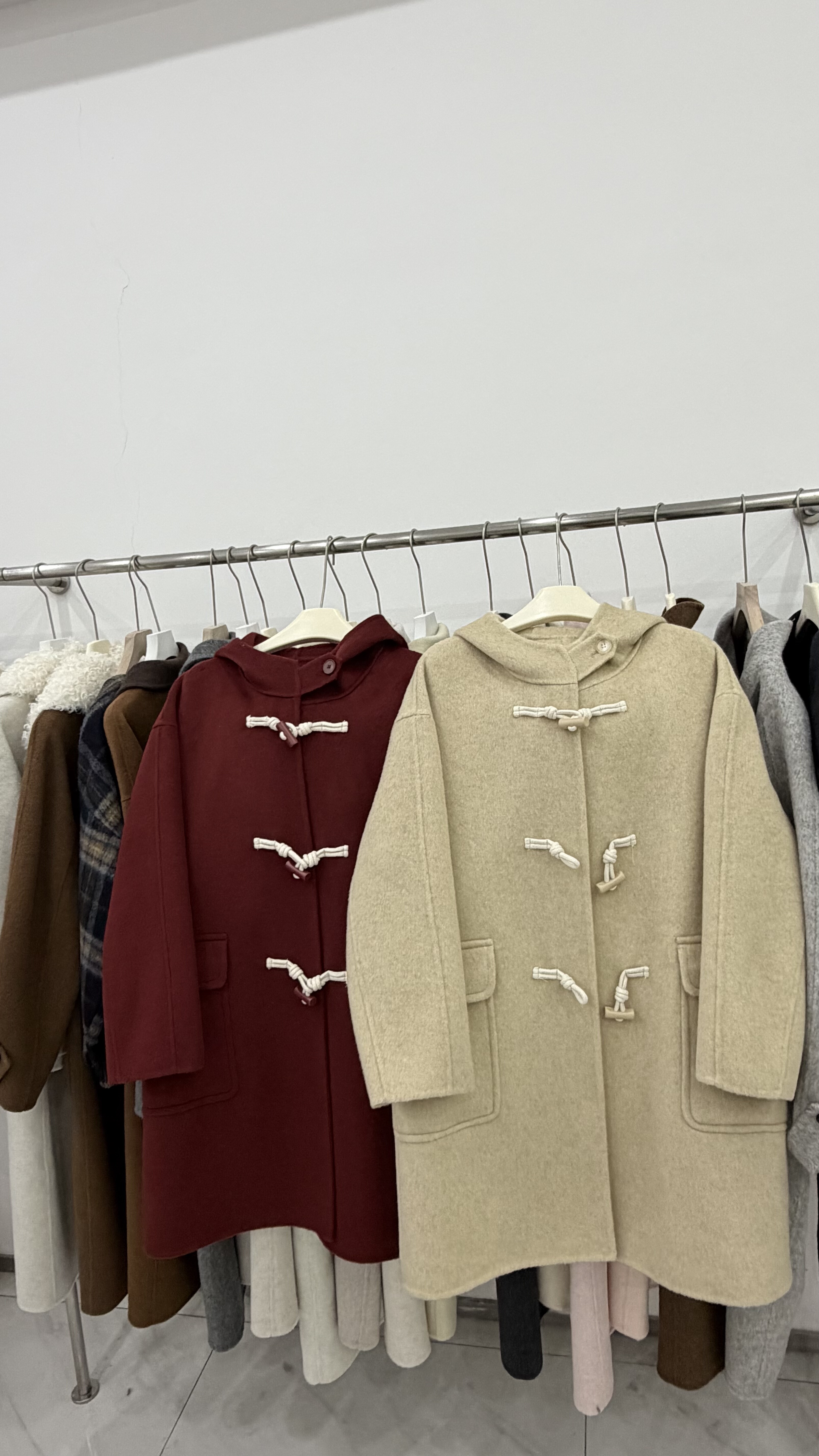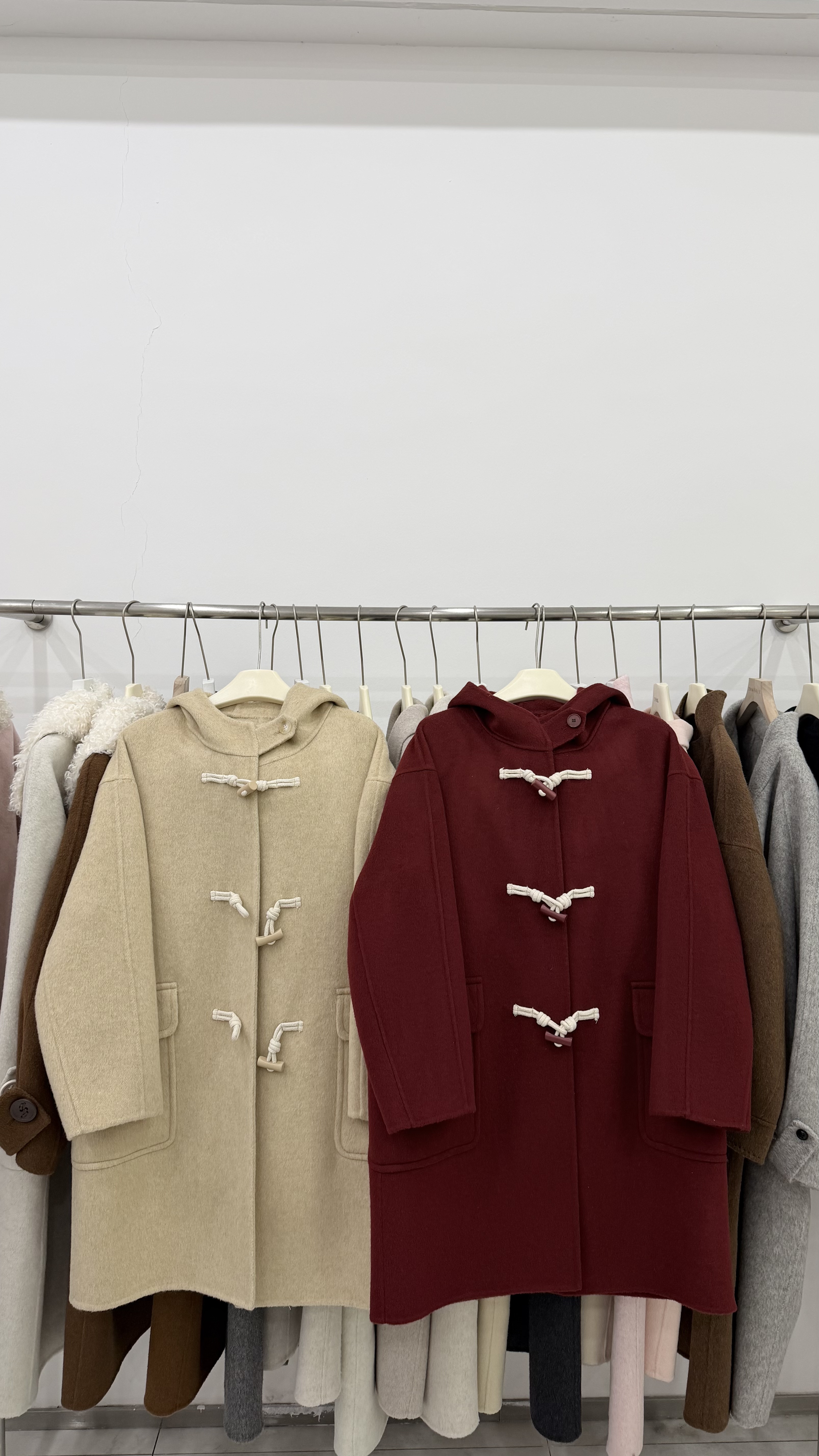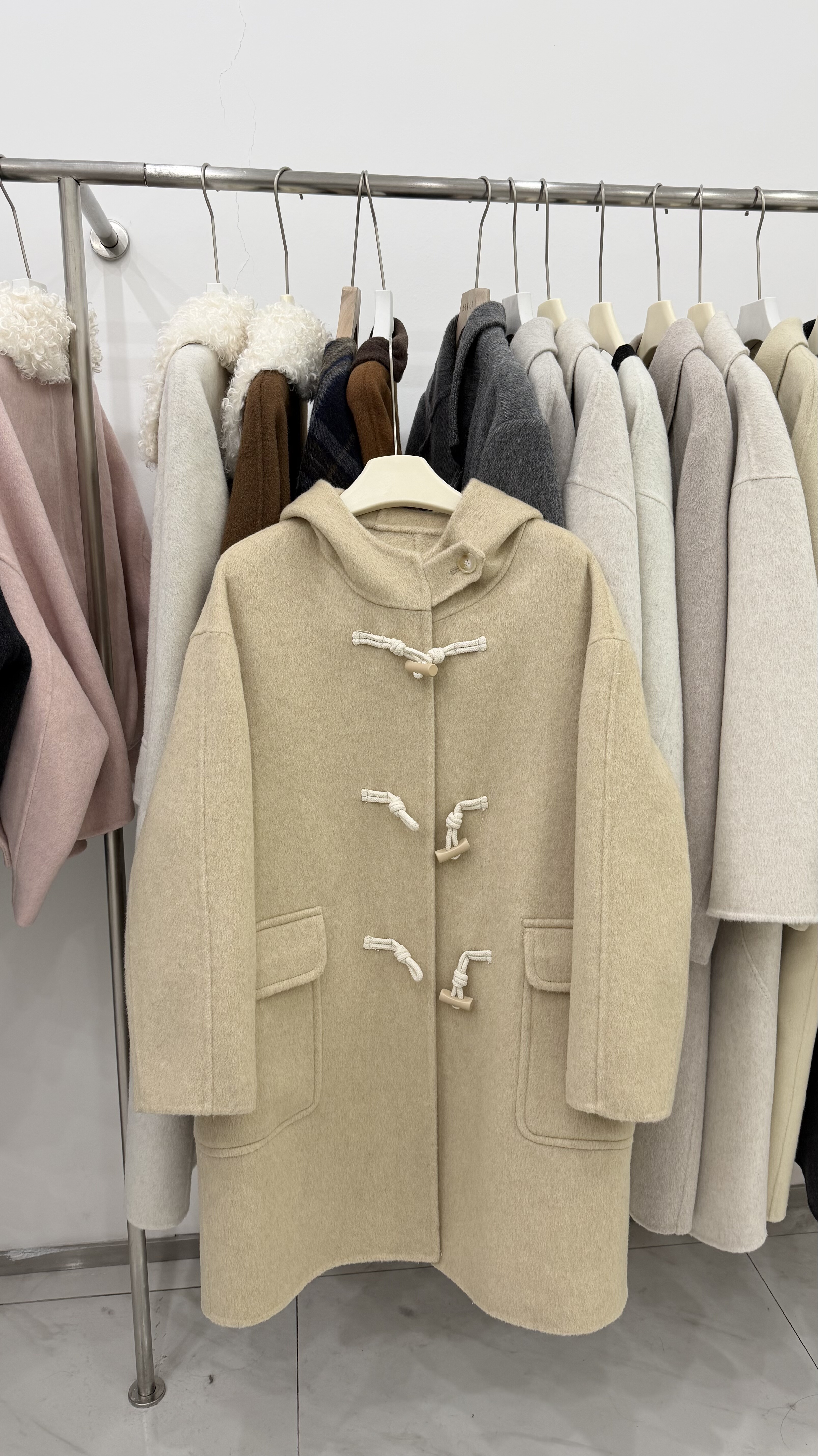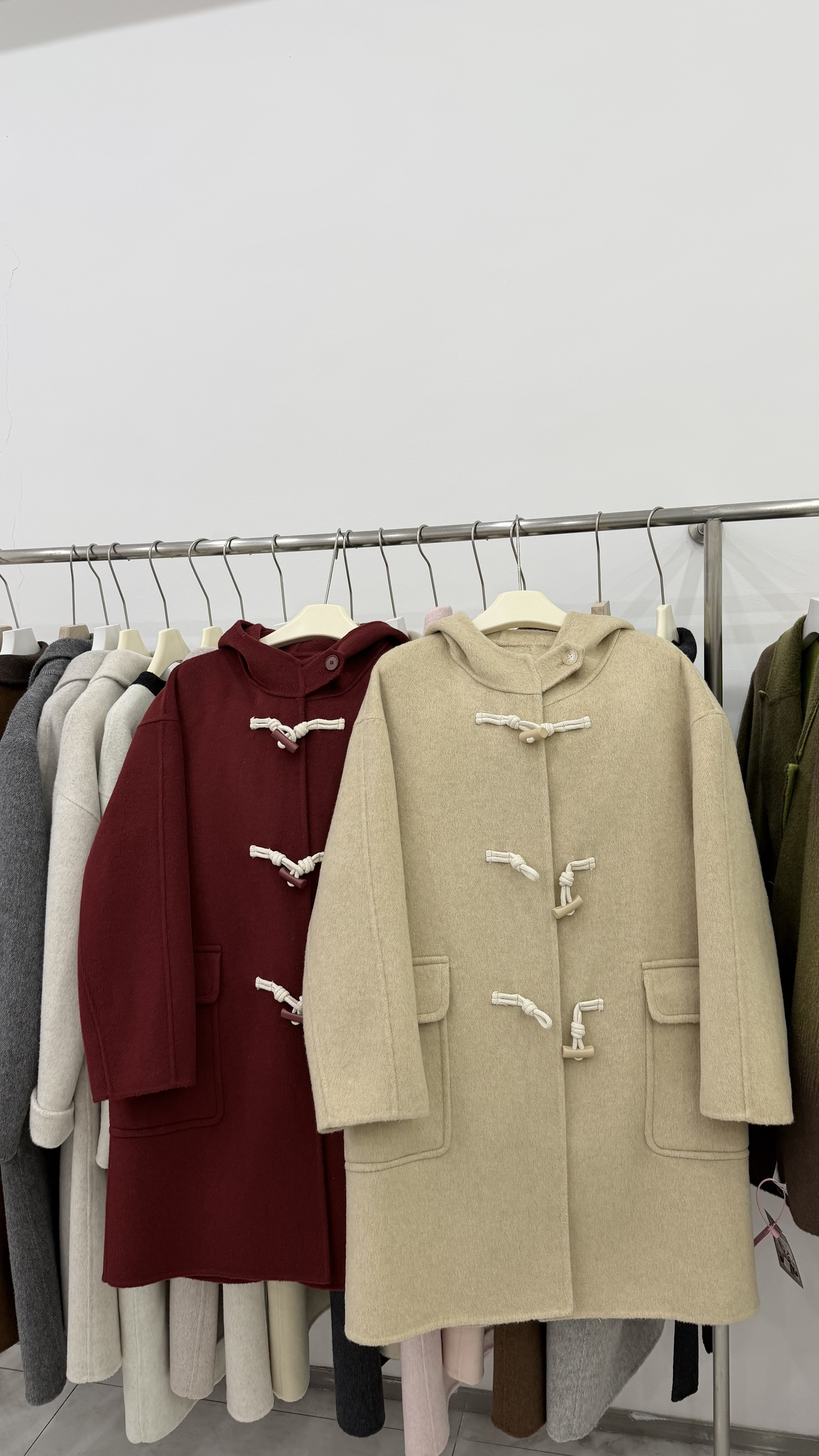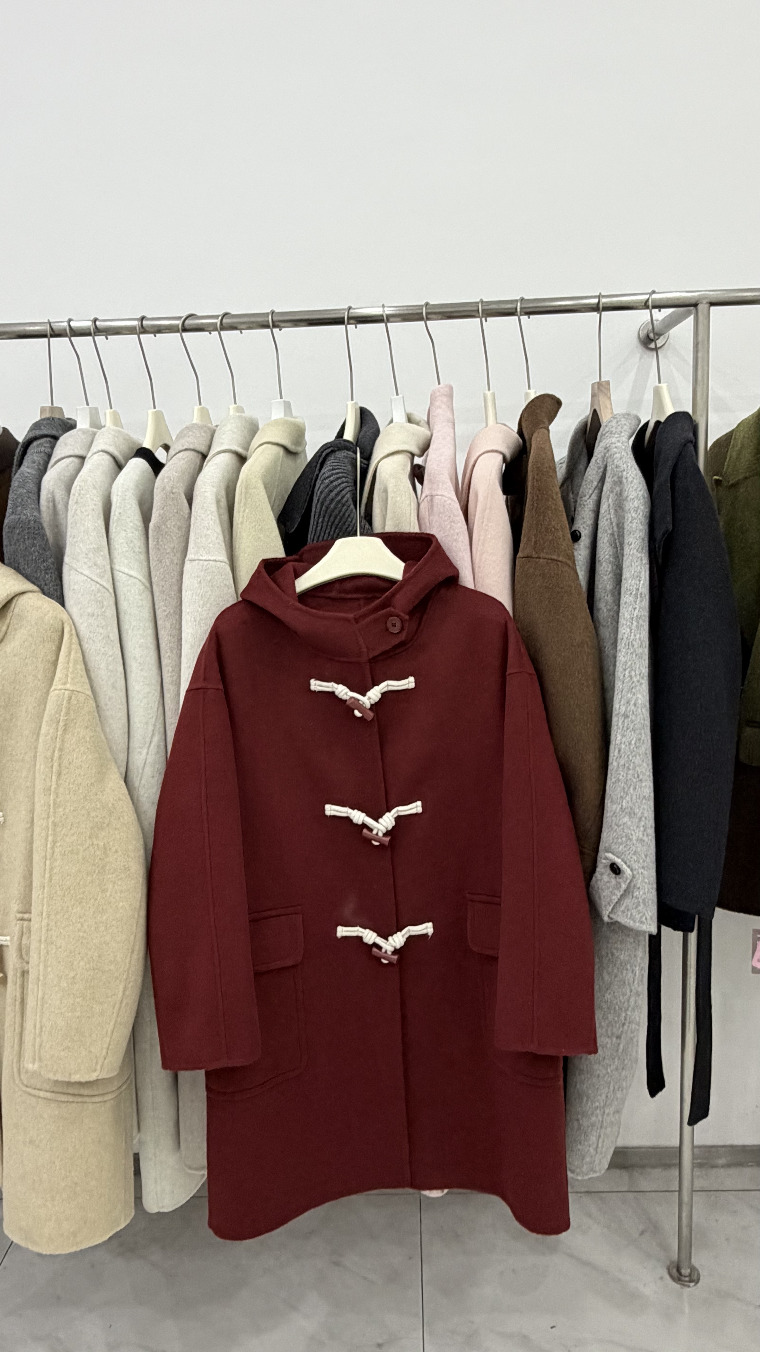 📚 2026秋冬新款牛角扣双面羊毛大衣女中长款连帽宽松显瘦羊毛外套