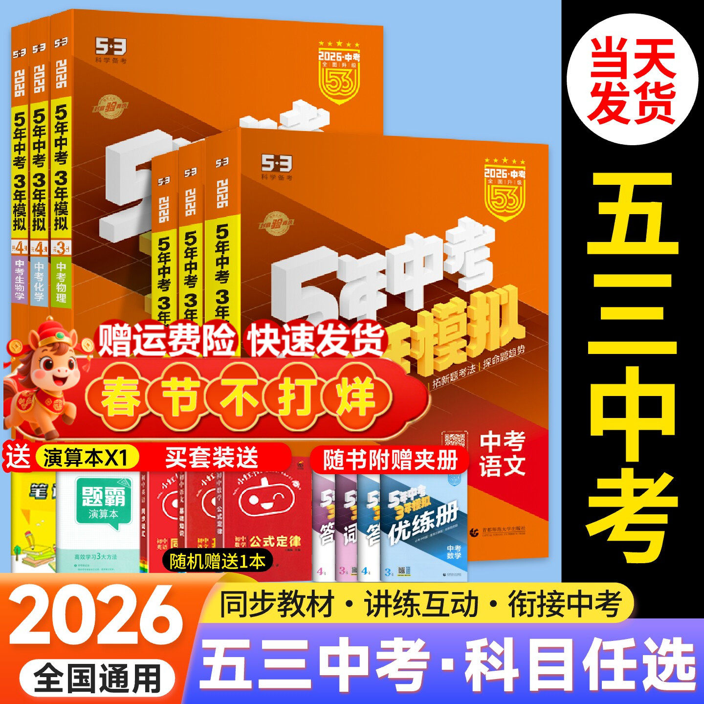 📚 2026五年中考三年模拟中考版语文数学英语物理化学历史政治道法全国通用版九年级53初中练习册八年级生物地理会考总复习资料数学
