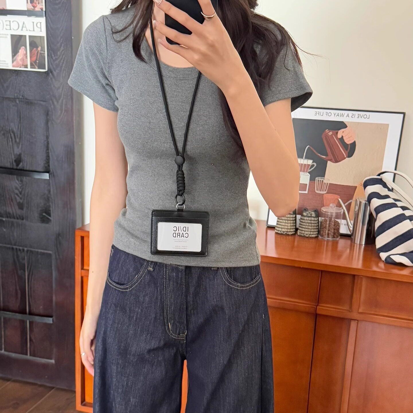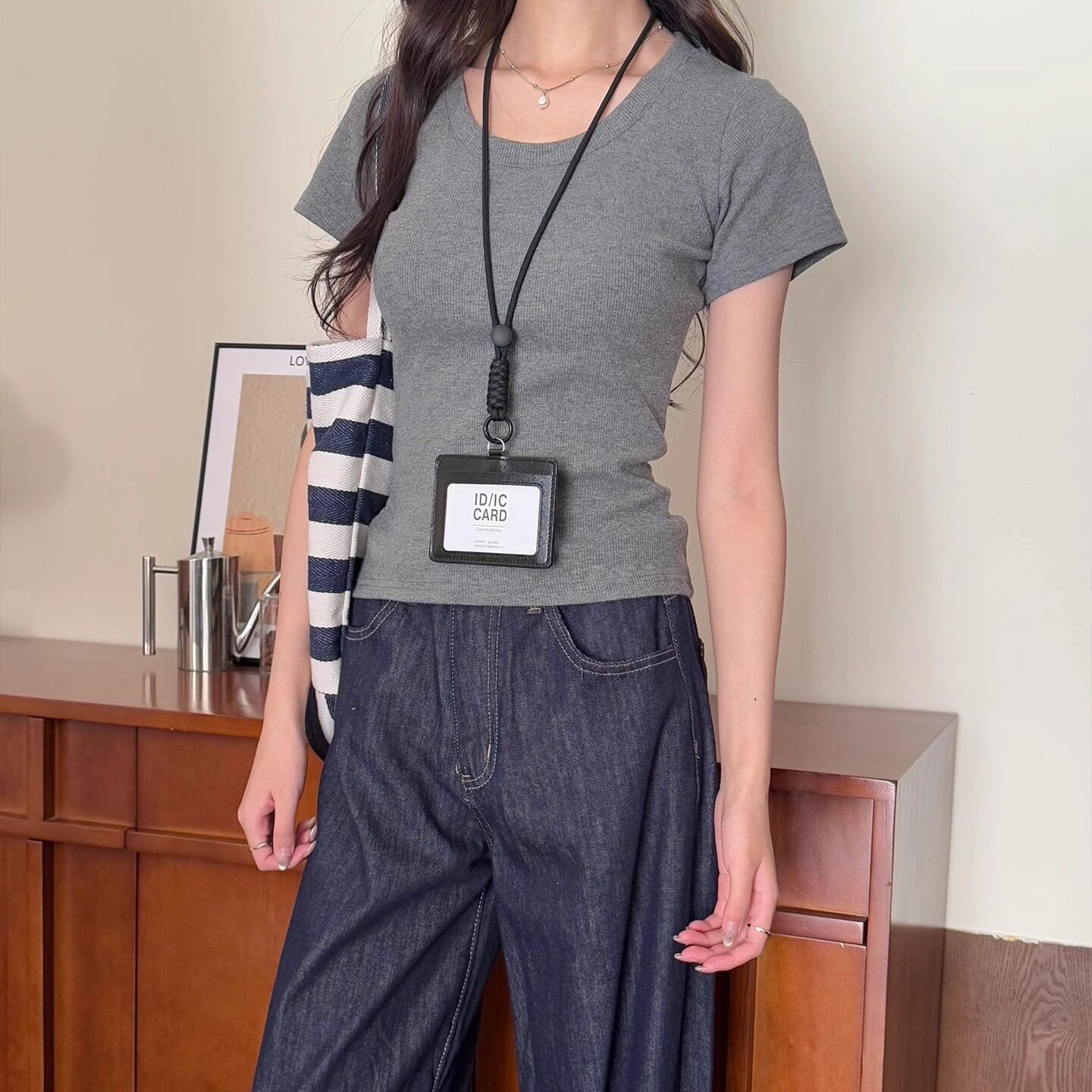 📚 美式辣妹u领正肩短袖t恤女夏季独特漂亮修身掐腰薄款灰色体恤上衣