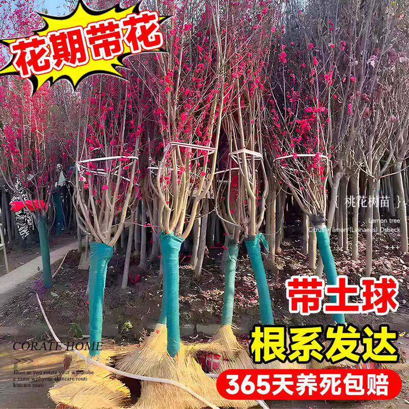 📚 紫叶碧桃树苗桃树彩叶大型耐寒绿化庭院地栽风景树红花碧桃树好养