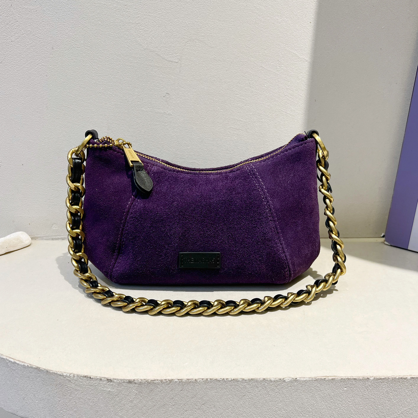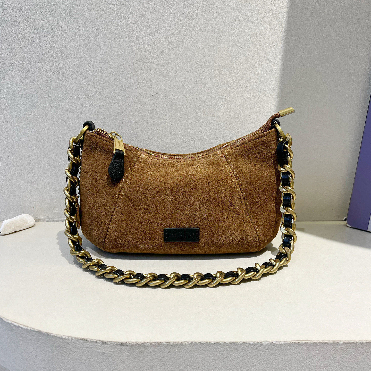📚 玛莎质感磨砂麂皮牛角包时尚链条腋下包女2025秋冬新款百搭斜挎包