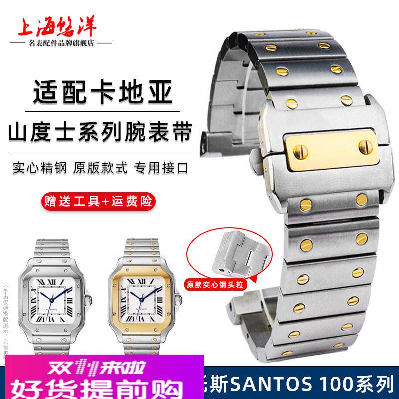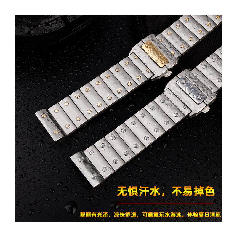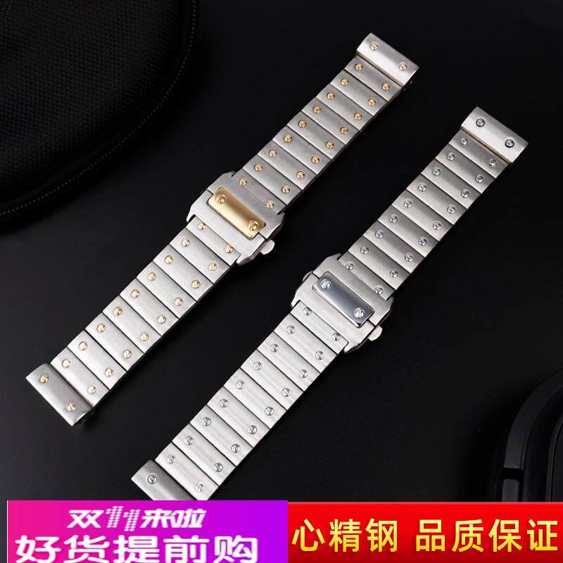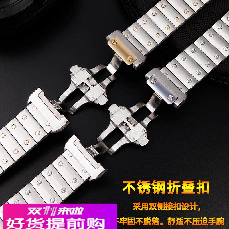 📚 适配卡地亚山度士原版款钢带桑托斯Santos100不锈钢男手表带23mm