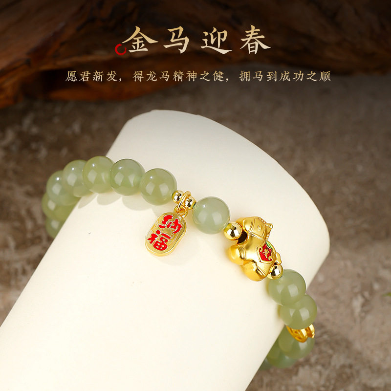 📚 天然冰晴和田玉手链女本命马年玉石手串马上发财马上有钱马上发财