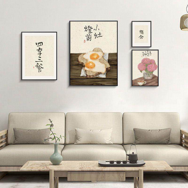 📚 一日三餐四季餐厅墙面装饰画新中式饭厅厨房挂画原木风歺厅壁画