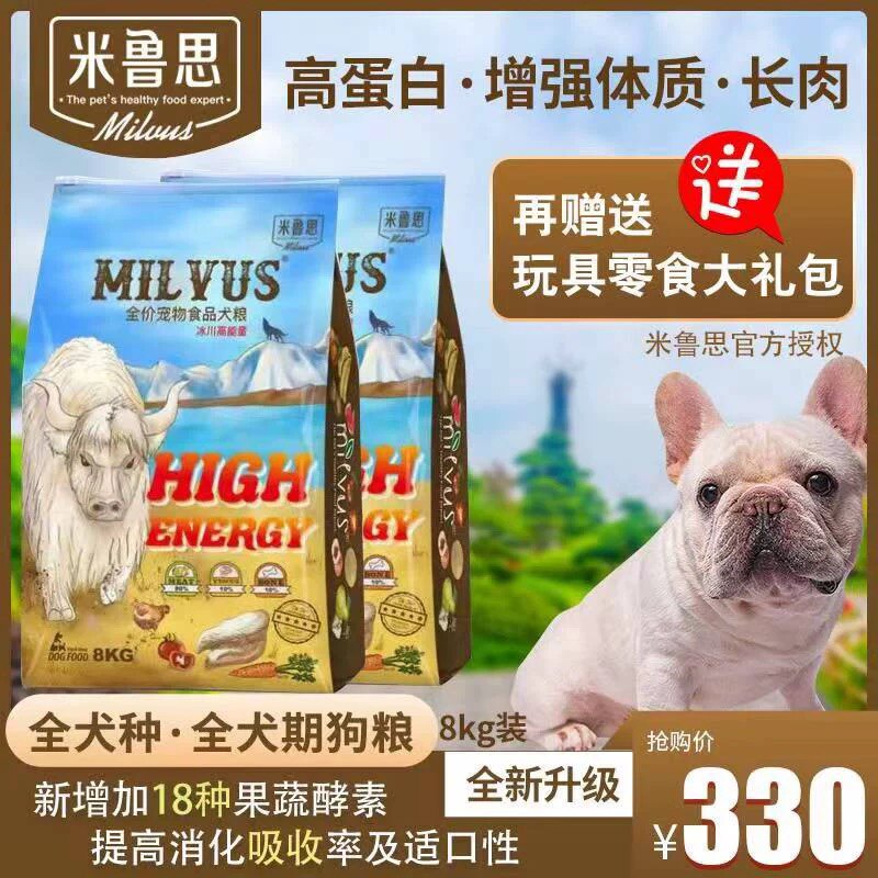 📚 包邮 米鲁思冰川高能量狗粮鲜肉牦牛肉虫草高蛋白全犬期8KG
