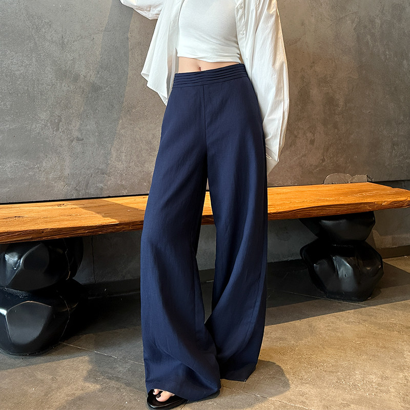 📚 白色天丝亚麻凉感阔腿裤女夏薄款垂感老钱风裤子棉麻休闲直筒裤子