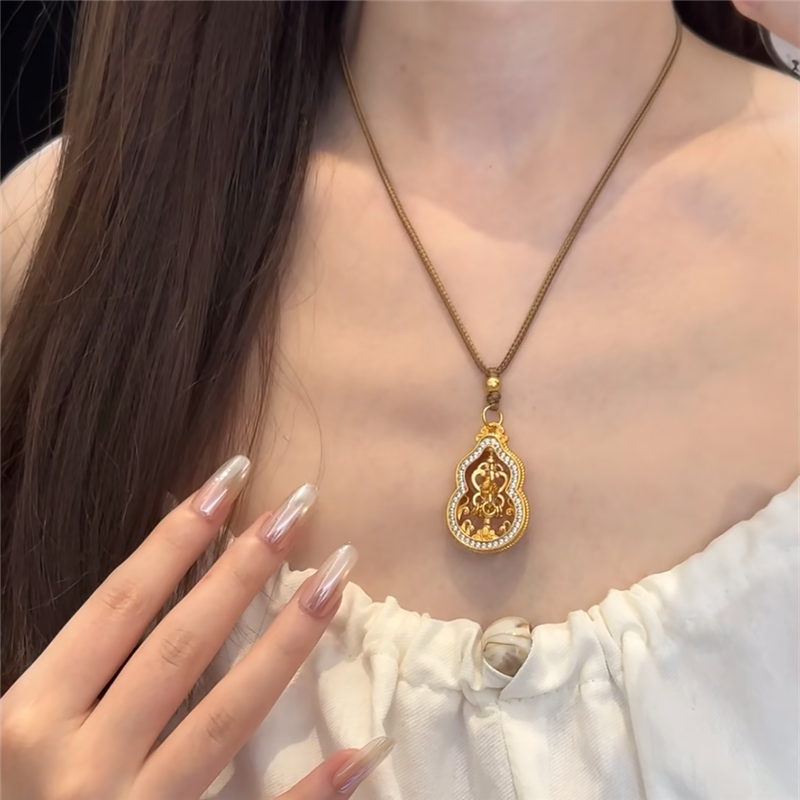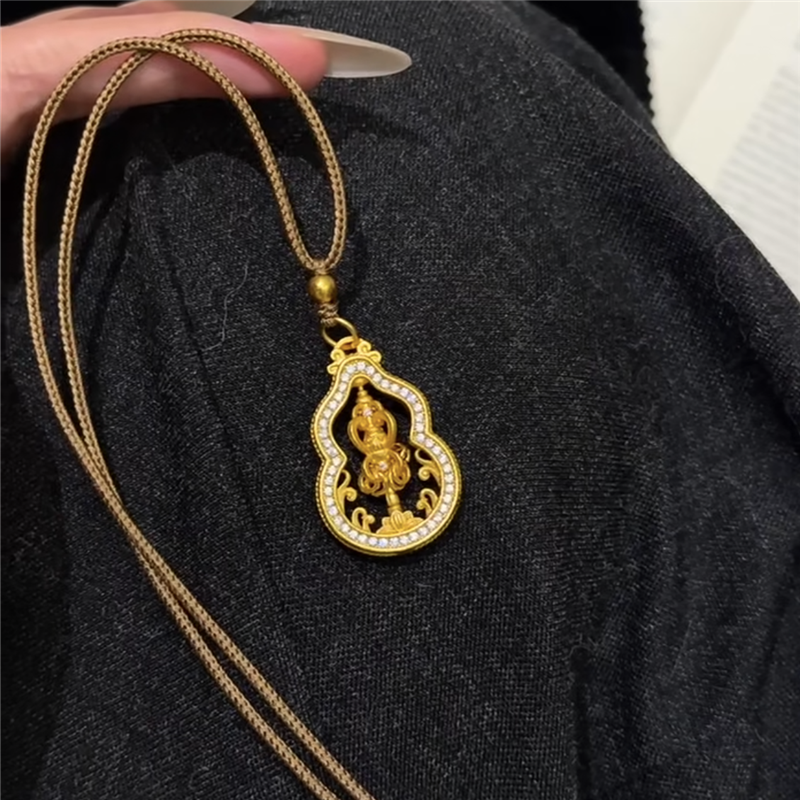 📚 古法沙金精工镶嵌满钻金刚杵锡杖葫芦项链旋转降魔杵毛衣链编织绳
