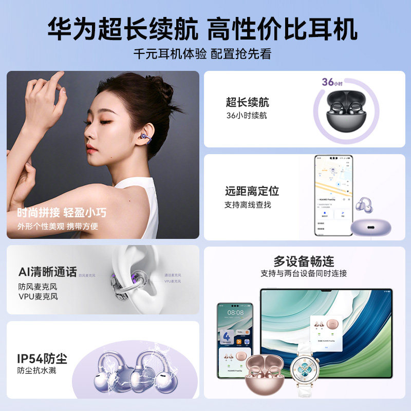 📚 华为耳夹式耳机华为freeclip蓝牙耳机开放式新款2025气传导耳机