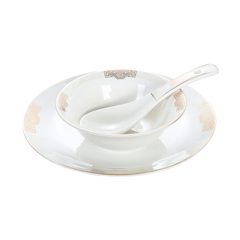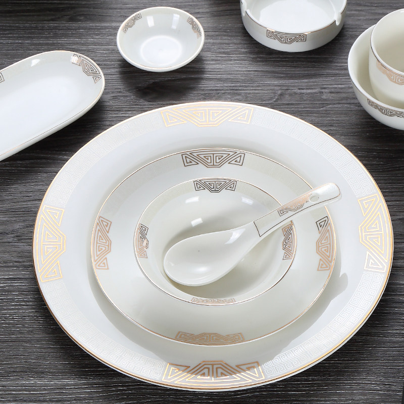 📚 中式星级酒店用品摆台餐具四件套陶瓷包厢摆盘碗盘碟套装金印紫绶