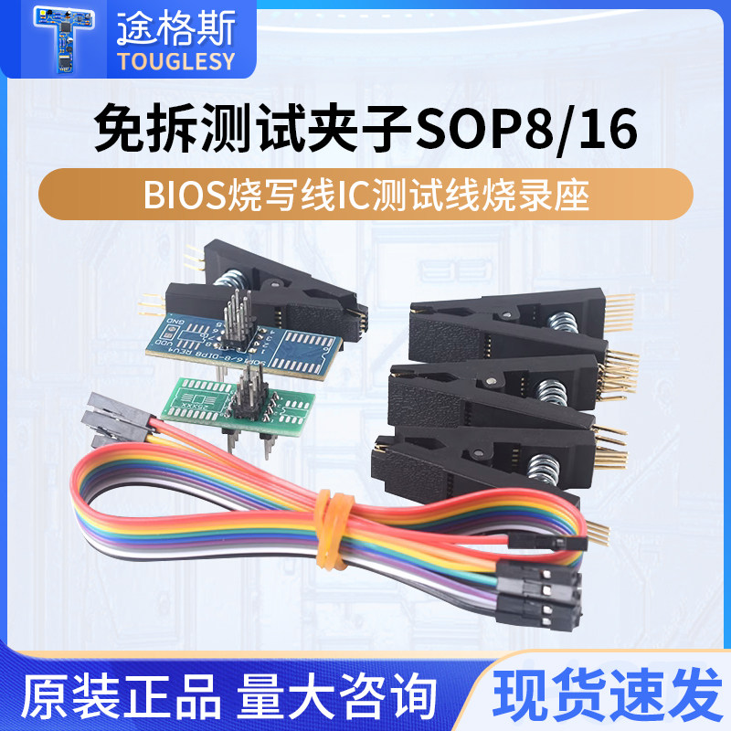 📚 CH341A/B编程器免拆测试夹SOP8/16BIOS烧写线IC测试线芯片烧录座